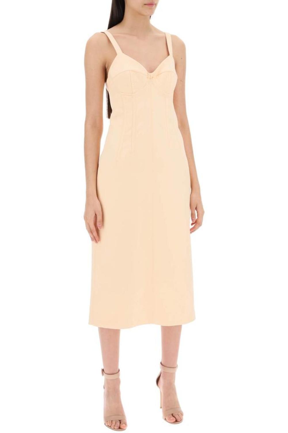 • This Sportmax midi dress is made of stretch cotton twill, lined for added comfort. It features a bustier design with a sweetheart neckline defined by shaped cups and boning, as well as internal stitching. The adjustable straps and invisible back zip closure add practicality to the garment, which is finished with the iconic rhinestone logo of the maison. The fitted silhouette is enhanced by a central slit at the back. Fully lined. Model is 177 cm tall and wears an IT size