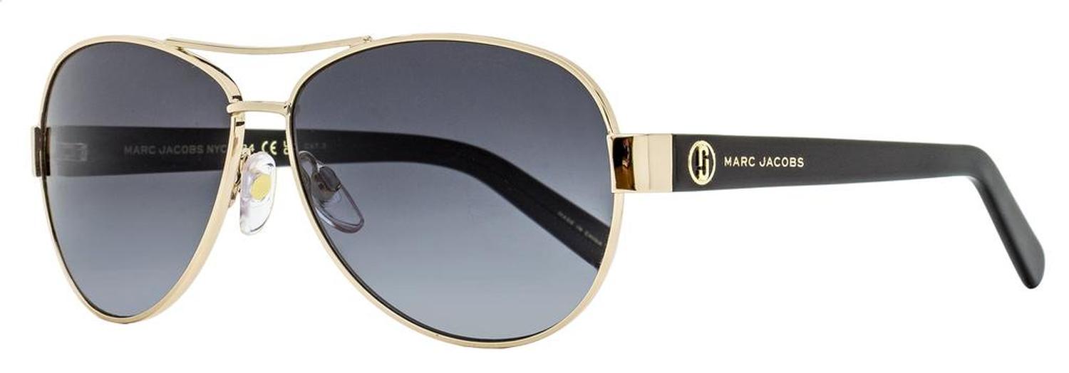 The Marc Jacobs 699 Sunglasses feature a classic Pilot shape suitable for all genders. The metal frame is complimented with acetate temples with branding and the double J logo. The Marc Jacobs collection encompasses some of the most coveted design accessories; including his desirable handbags, watches, and eyewear. Providing 100% UV protection from the sun's harmful rays these sunglasses are functional in addition to being fashionable.Frame Material - Metal/Plastic (Acetate)Frame Color - Gold/BlackLens Color - Gray GradientSize - 60-13-135Made in ChinaIncludes original case and cloth