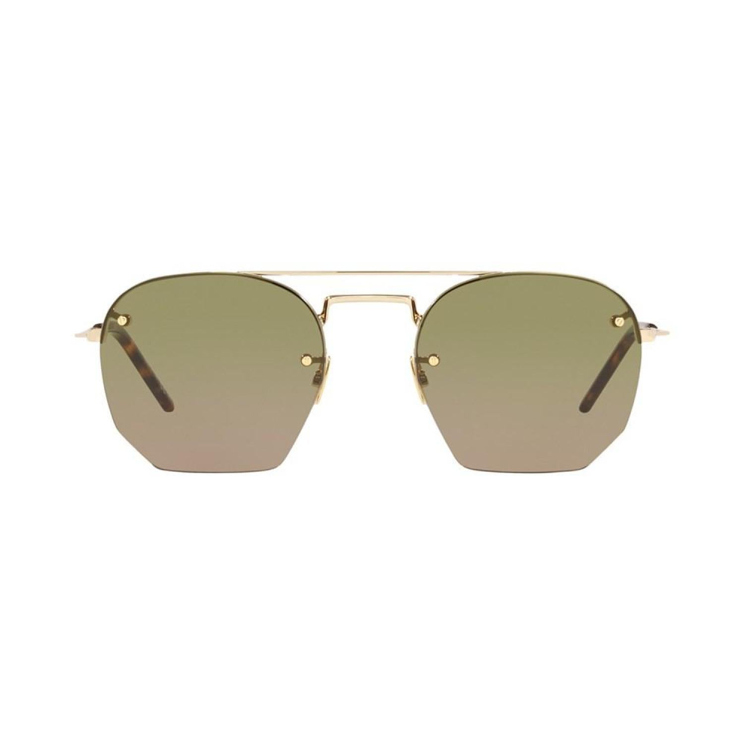 A rimless metal style with a peculiar lens shape, featured in the SS21 fashion show and in the man advertising campaign. The thin metal temples are enriched with the Saint Laurent lasered logo.