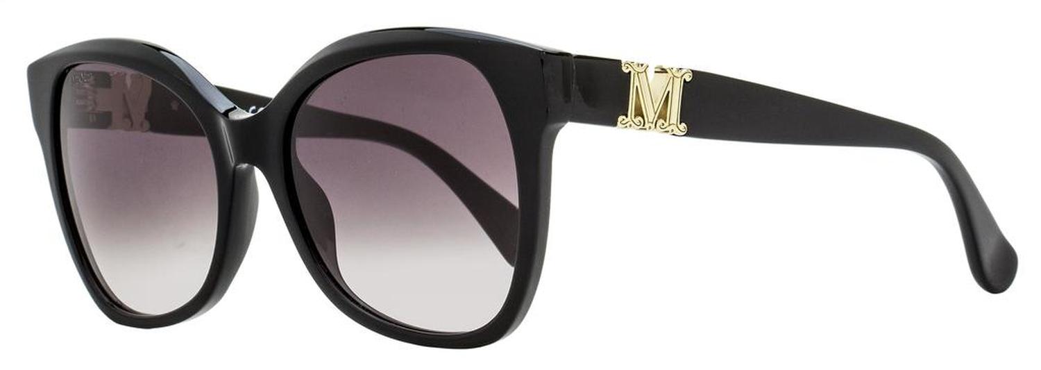 The Max Mara 0014 Emme3 sunglasses feature a soft butterfly profile suitable for women. The rich acetate frame is accented with an arching brow line and stylized M monogram on both temples. Max Mara eyewear blends Italian sophistication with modern elegance, featuring sleek designs crafted from premium materials. With a perfect balance of classic style and contemporary details, each piece embodies effortless luxury. Providing 100% UV protection from the sun's harmful rays these sunglasses are functional in addition to being fashionable.Frame Material - Plastic (Acetate)Frame Color - BlackLens Color - Gray GradientSize - 56-18-140Made in ChinaIncludes original case and cloth