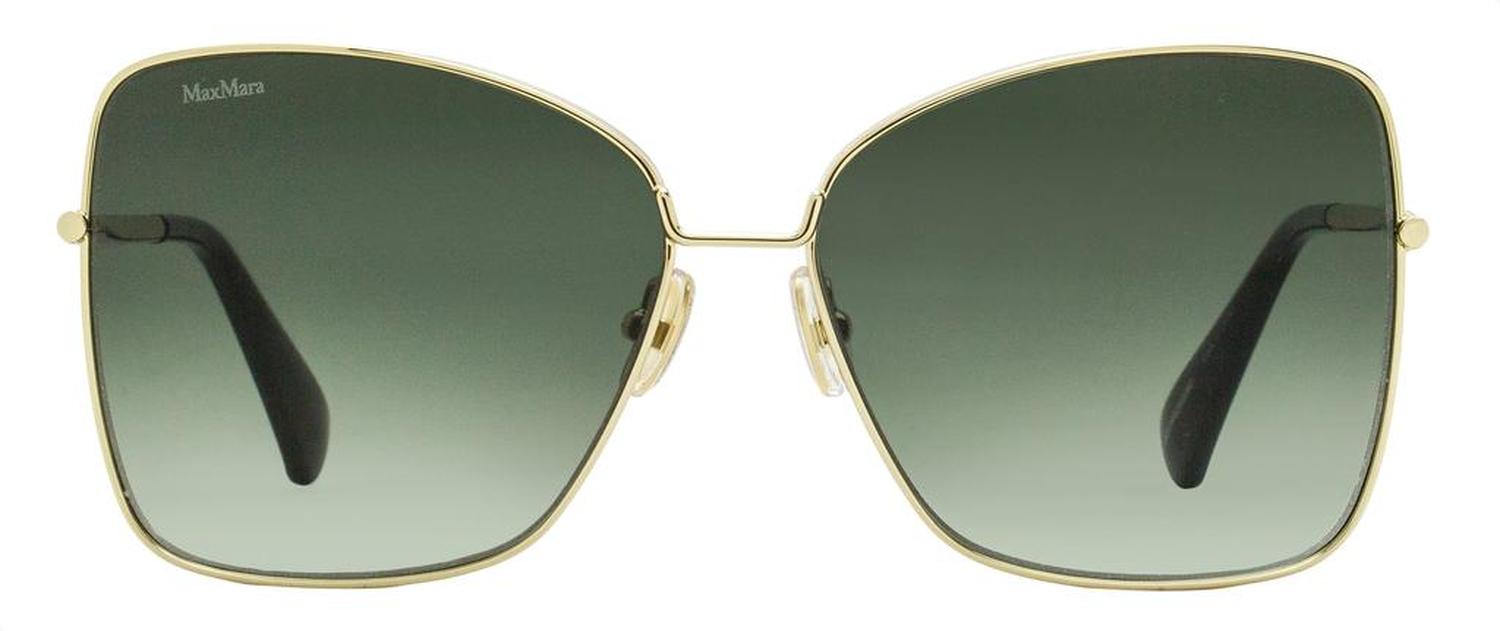 The Max Mara 0097 Menton1 sunglasses feature an elegant butterfly profile suitable for women. The metal frame is accented with a wide edge around the lens rim and subtle laser etched branding on both temples. Max Mara eyewear blends Italian sophistication with modern elegance, featuring sleek designs crafted from premium materials. With a perfect balance of classic style and contemporary details, each piece embodies effortless luxury. Providing 100% UV protection from the sun's harmful rays these sunglasses are functional in addition to being fashionable.Frame Material - MetalFrame Color - Gold/GreenLens Color - Green GradientSize - 59-14-135Made in ChinaIncludes original case and cloth