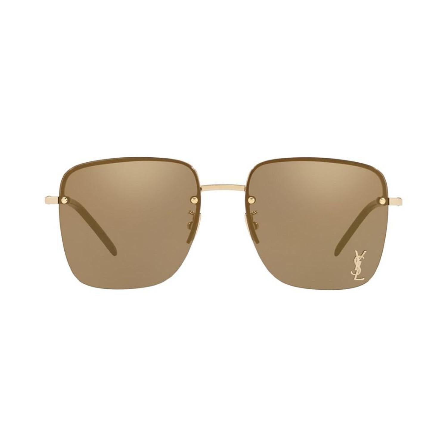 A modern half rim squared feminine shape. Extremely lightweight metal style contrasting the bold YSL logo positioned on the lens. Shiny metal construction featuring refined gradient lenses. The style is enriched by gradient and colored lenses in natural tones.