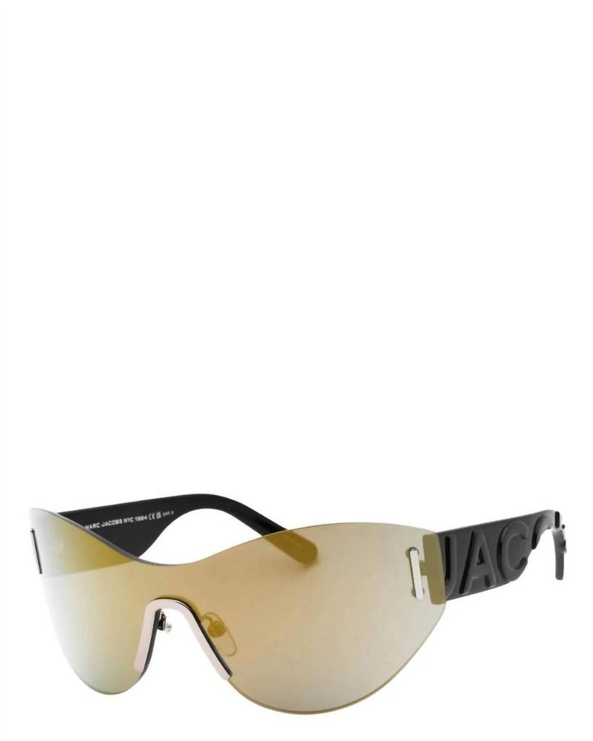 Women's Rimless Shield Acetate Sunglasses In Gold Black/grey Bronze