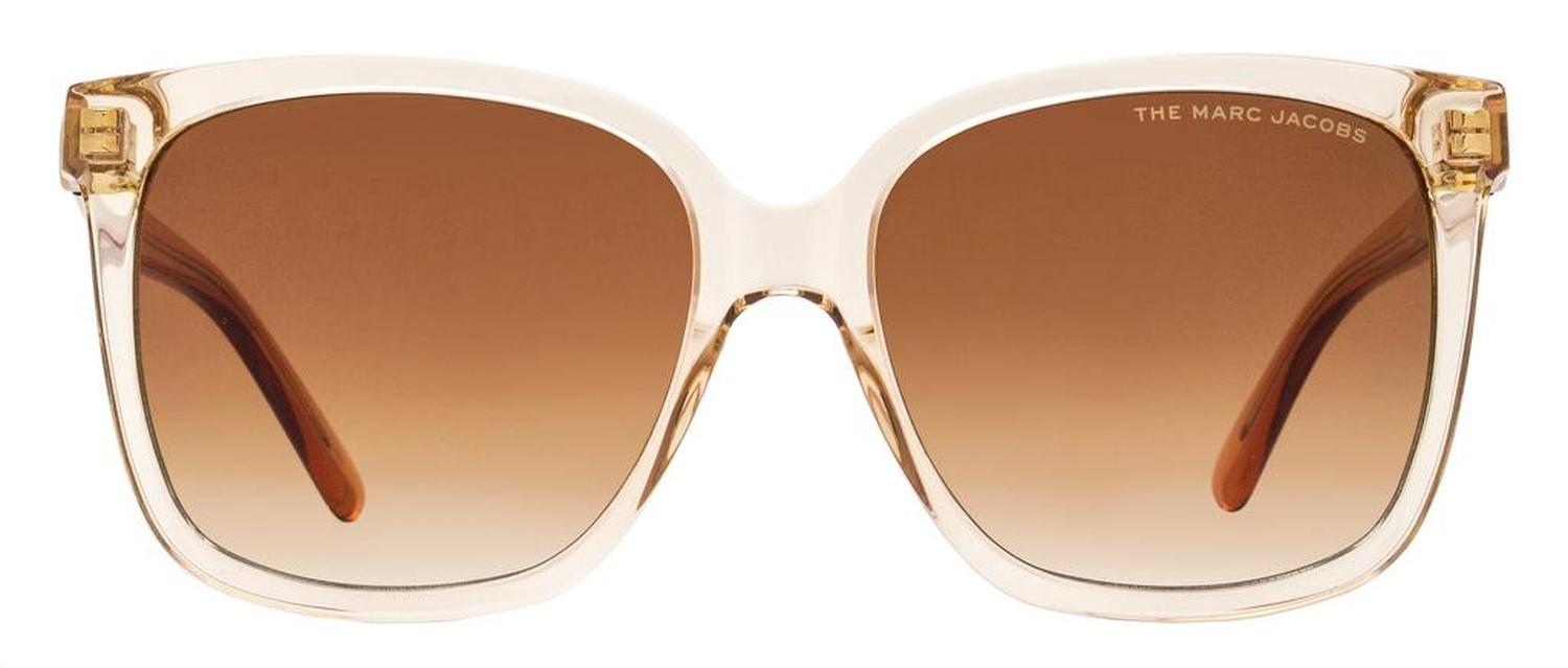 The Marc Jacobs 582 Sunglasses feature a soft square shape suitable for women. The acetate frame features subtle branding and logo plaque on both temples. The Marc Jacobs collection encompasses some of the most coveted design accessories; including his desirable handbags, watches, and eyewear. Providing 100% UV protection from the sun's harmful rays these sunglasses are functional in addition to being fashionable.Frame Material - Plastic (Acetate)Frame Color - Orange-BeigeLens Color - Brown GradientSize - 56-16-140Made in ChinaIncludes original case and cloth