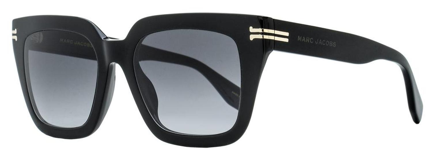 The Marc Jacobs 1083 Sunglasses feature an on-trend square shape suitable for women. The rich acetate frame is accented by double bar metal detailing through the hinge and laser etched branding on both sides. The Marc Jacobs collection encompasses some of the most coveted design accessories; including his desirable handbags, watches, and eyewear. Providing 100% UV protection from the sun's harmful rays these sunglasses are functional in addition to being fashionable.Frame Material - Plastic (Acetate)Frame Color - Black/GoldLens Color - Gray GradientSize - 52-19-140Made in ChinaIncludes original case and cloth