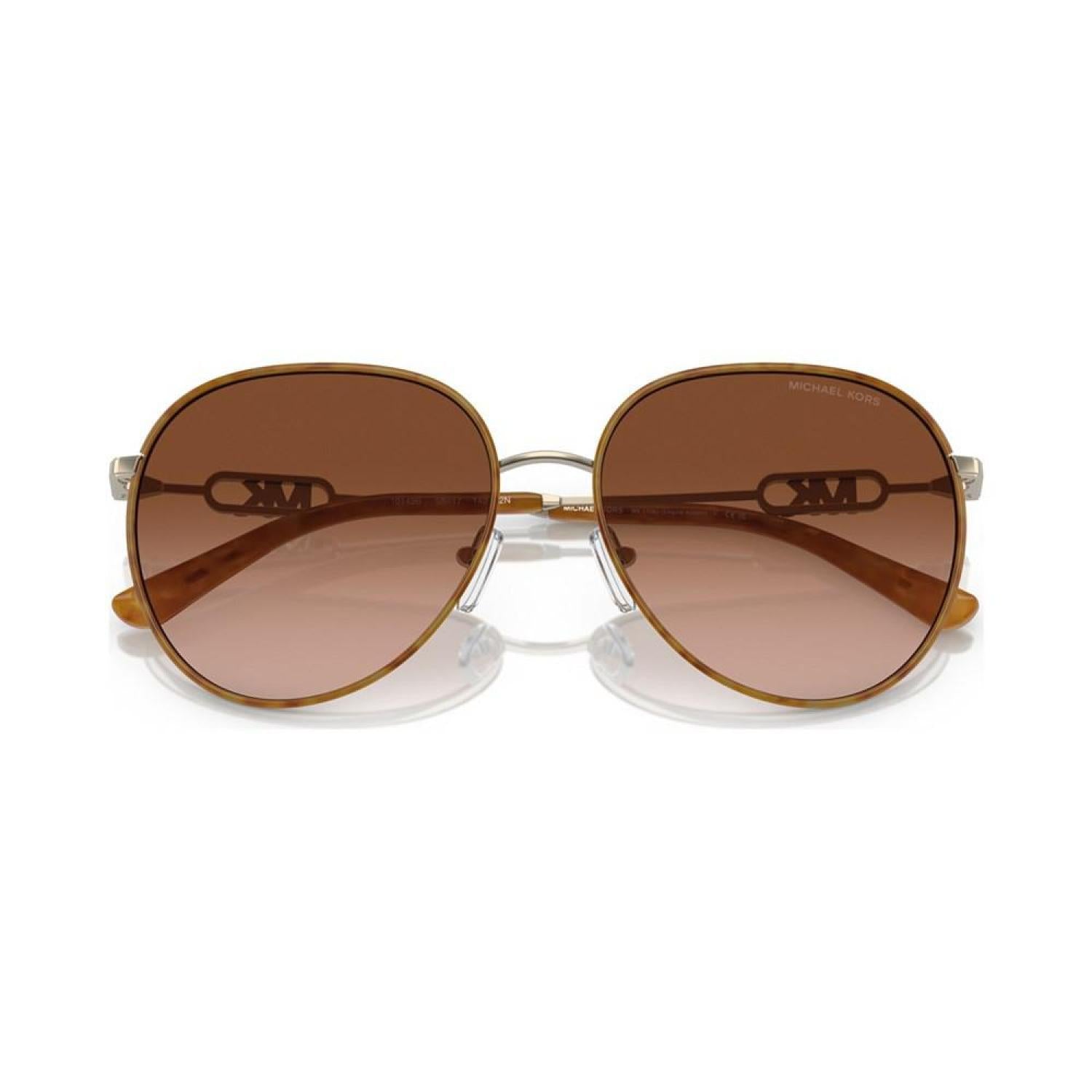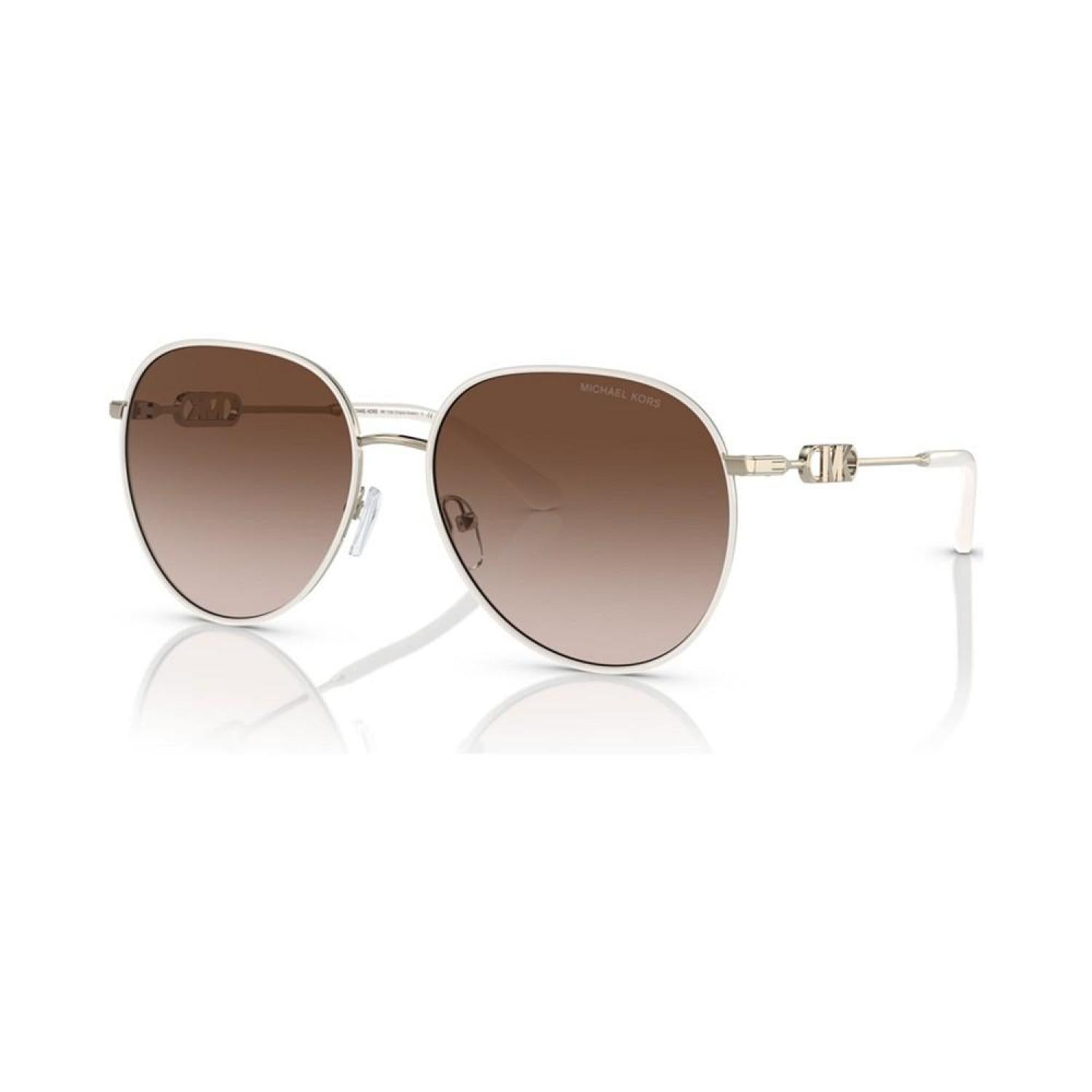 • Dynamic metal pilot shape with gradient lenses. Frames featuring front Windsor rim accents. Temple featuring a delicate take on the Michael Kors empire hardware.