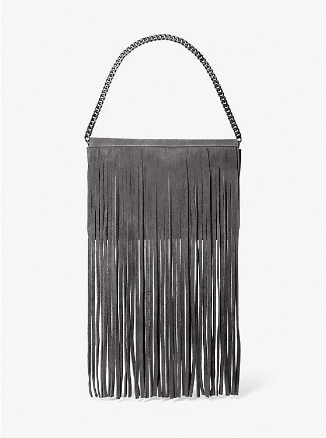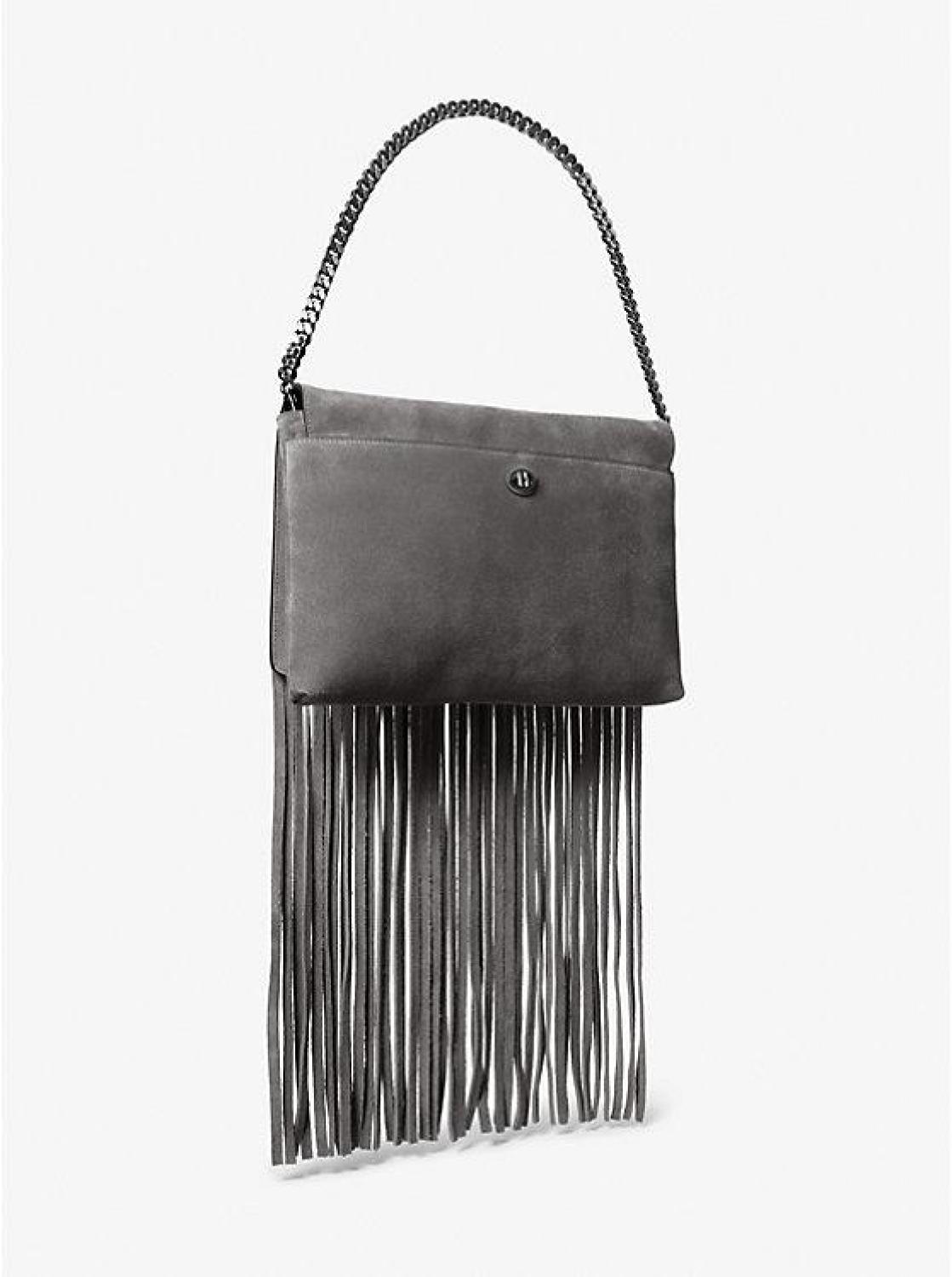 Capture the essence of ‘70s-inspired glamour with the Ali clutch, as seen on the Fall/Winter 2023 runway. Its luxurious suede construction showcases exquisite Italian craftsmanship, while dramatic fringed strands add an element of playful movement. Carry it by the chain-link strap for a hint of edge. • Clutch bag • Suede • 100% suede • Gunmetal hardware • 11.5”W X 8”H X 1.5”D • Handle drop: 8” • Exterior details: back slip pocket, removable strap • Interior details: back zip pocket • Lining: 100% suede • Snap fastening • Made in Italy • Clutch bag • Suede • 100% suede • Gunmetal hardware • 11.5”W X 8”H X 1.5”D • Handle drop: 8” • Exterior details: back slip pocket, removable strap • Interior details: back zip pocket • Lining: 100% suede • Snap fastening • Made in Italy