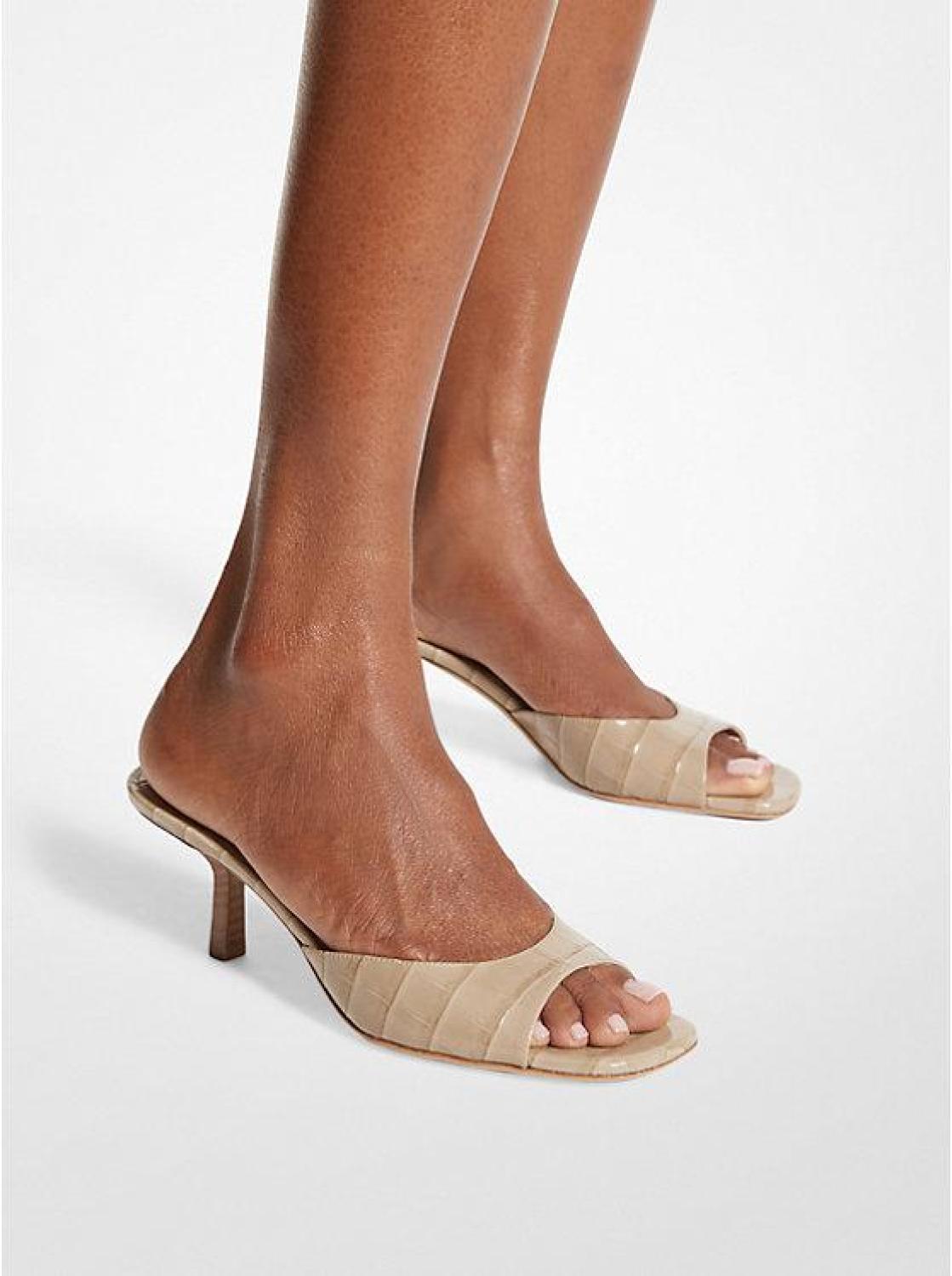 Set on a shapely kitten heel for feminine flair, our Anita sandal exudes tactile glamour and confidence with every step. This striking pair is finely crafted in Italy from crocodile-embossed leather and dyed in a neutral hue for endless styling options. Wear them with mid-length dresses for a conversation-starting look. • Sandal • Crocodile embossed leather • 100% leather • Lining: 100% leather • Sole: leather • Open toe • Slip on • Heel height: 2.36" • Heel type: stacked • Made in Italy • Sandal • Crocodile embossed leather • 100% leather • Lining: 100% leather • Sole: leather • Open toe • Slip on • Heel height: 2.36" • Heel type: stacked • Made in Italy