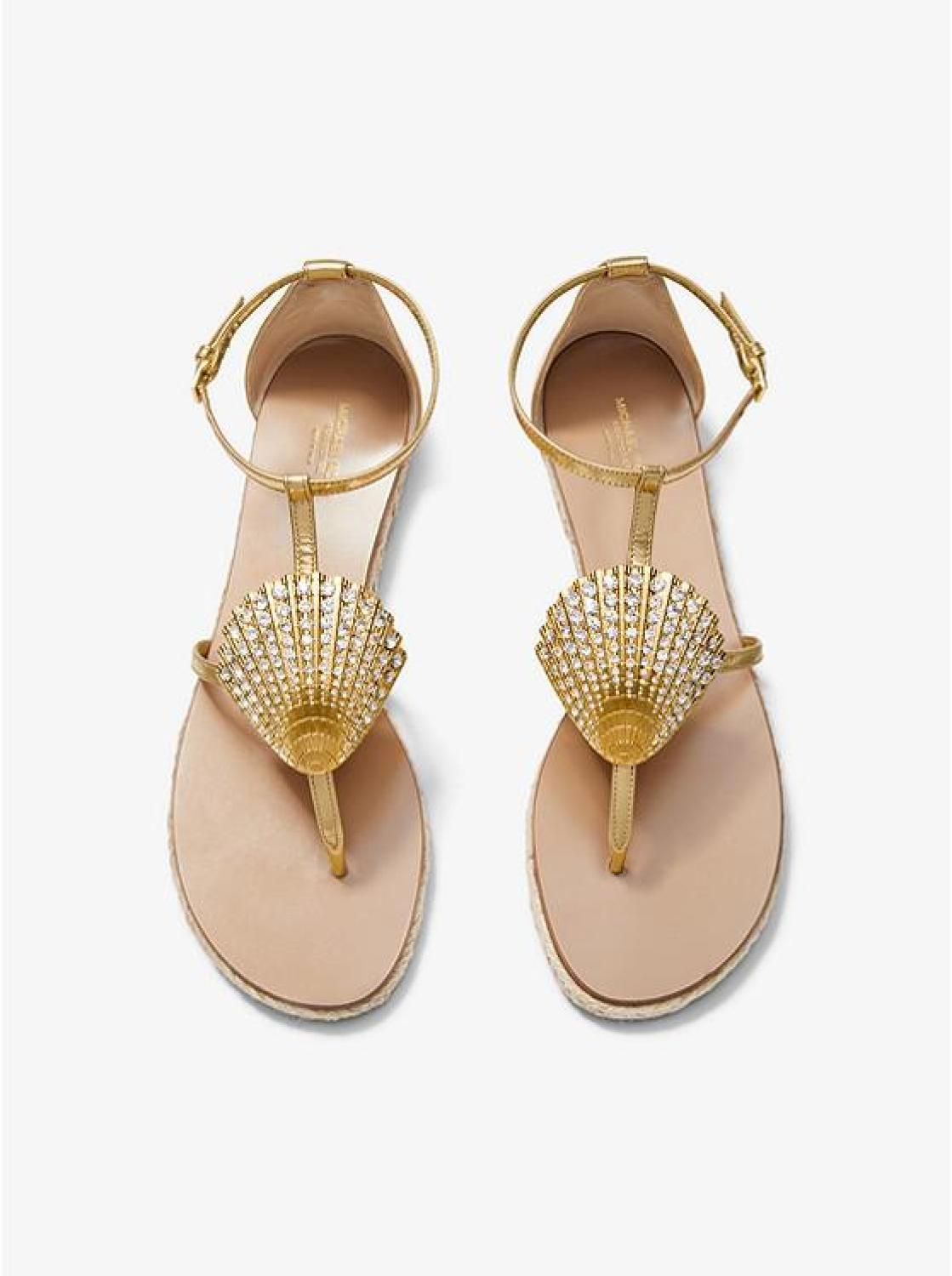 Annabeth Seashell-Embellished Metallic Leather Sandal