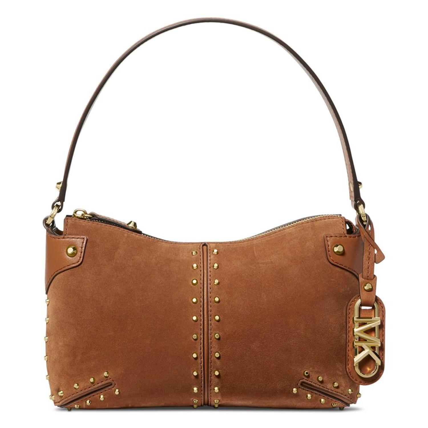 Sophisticated with a dash of boho, the Astor Small Leather Pouchette by MICHAEL Michael Kors is perfect for everyday casual style. Small sized bag; 11"W x 6-3/4"H x 2-1/2"D (width is measured across the bottom of handbag); 0.56 lbs. approx. weight Silhouette is based off 5'9" model 7-1/4"L handle Zippered closure Gold-tone hardware Interior zip & slip pockets Leather; lining: polyester Spot clean Imported