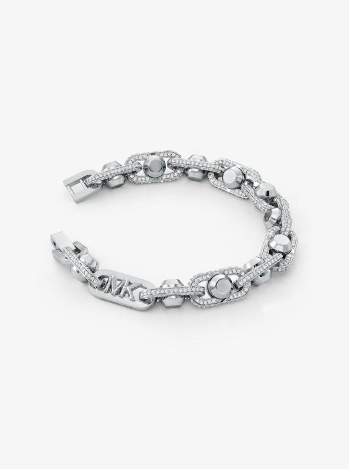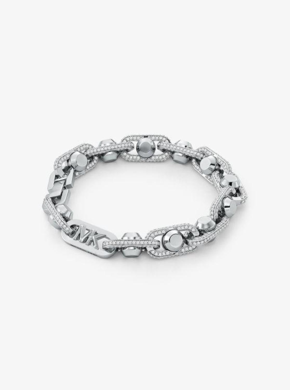Perfect for stacking or wearing solo, this striking bracelet features interlocking chain links punctuated by Astor studs and our Empire monogram. You’ll love wearing this tough-luxe accessory daily. After all, a touch of sparkle goes with everything. • Bracelet • Brass • Available in: rhodium plating • Cubic zirconia • 0.78" X 0.38" inner circumference • Clasp fastening • Imported • Michael Kors jewelry is made of precious metals combined with various elements including semi-precious stones. Apply perfume and cosmetics prior to putting on your jewelry. To clean your jewelry, wipe with the soft buffing cloth provided. Keep your jewelry away from moisture as it promotes tarnish. We recommend storing your jewelry in a clean, dry place, such as the pouch that the product comes in. • Bracelet • Brass • Available in: rhodium plating • Cubic zirconia • 0.78" X 0.38" inner circumference • Clasp fastening • Imported • Michael Kors jewelry is made of precious metals combined with various elements including semi-precious stones. Apply perfume and cosmetics prior to putting on your jewelry. To clean your jewelry, wipe with the soft buffing cloth provided. Keep your jewelry away from moisture as it promotes tarnish. We recommend storing your jewelry in a clean, dry place, such as the pouch that the product comes in.