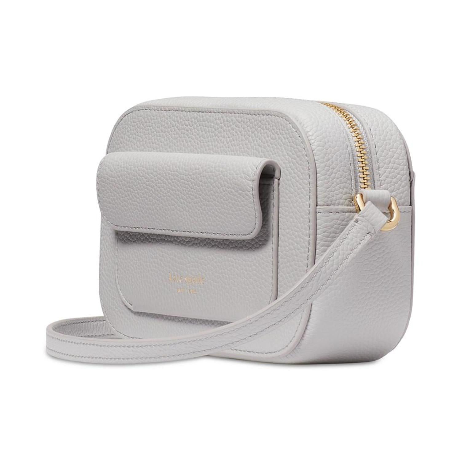 Crafted in pebbled leather, the Ava crossbody by kate spade new york is a classic, hands-free style with a little more storage, thanks to its extra front flap pocket. Mini sized bag; 7-1/4"W x 4-2/3"H x 2-1/4"D (width is measured across the bottom of handbag) Silhouette is based off 5'9" model 22" removable, adjustable strap Zip closure Gold-tone hardware, front flap pocket Interior slip pocket Leather Spot clean Imported