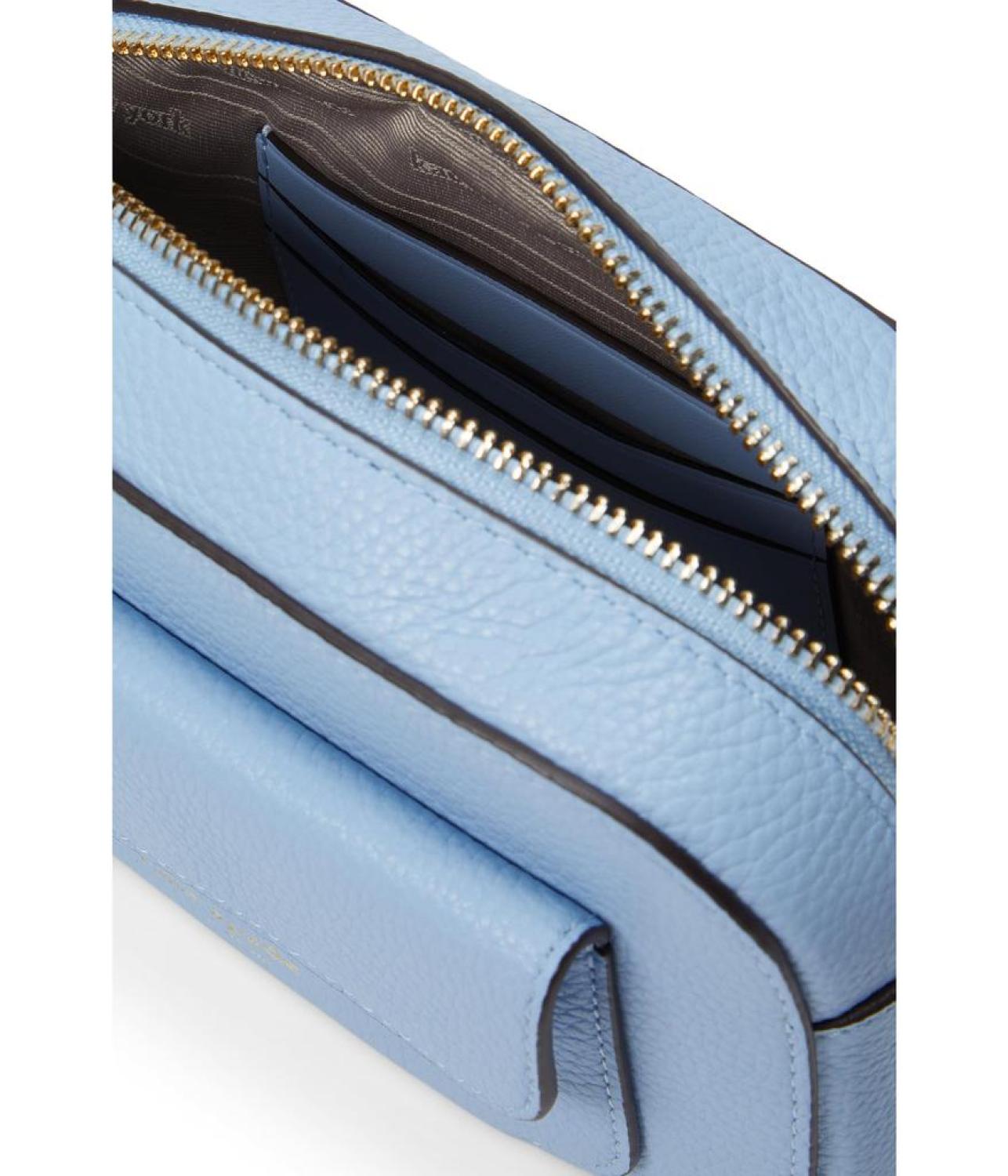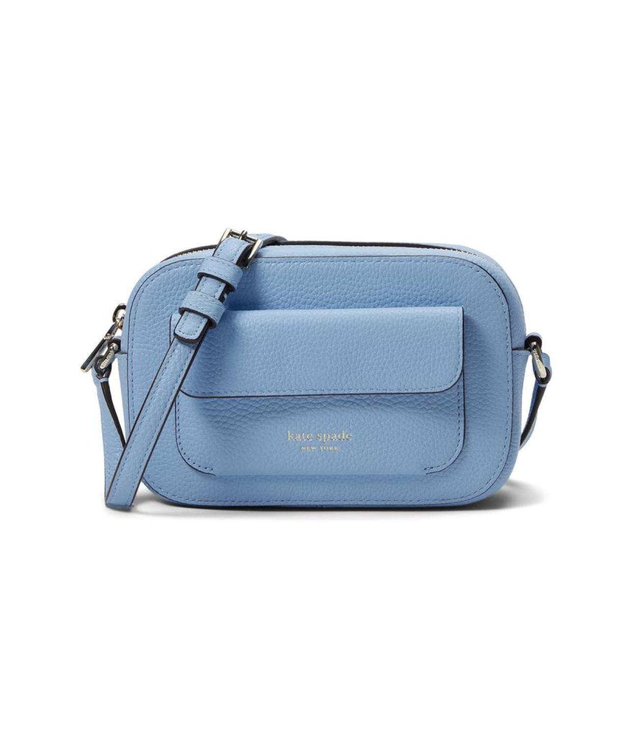 • Pack memories and unpack joy with the Kate Spade New York® Ava Pebbled Leather Crossbody. Crafted from leather, this bag features zippered closure, adjustable crossbody strap, interior credit card slots, and one exterior pocket on the front with brand detailing.