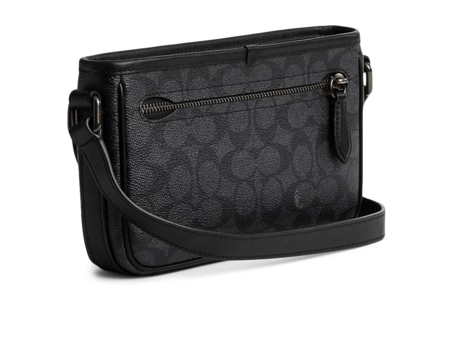 Please Note: COACH™ items cannot be shipped to military addresses (APO or FPO) and addresses in Hawaii, the Virgin Islands, Guam or any other locations outside of the continental US. COACH™ Beck Slim File Bag Crossbody in Signature Bag is an ultra-stylish and functional pick for your office days. Topped with a secure zippered closure, the bag opens into a roomy interior with one multifunction pocket. The exterior displays one flap pocket and one zippered pocket for enhanced storage and organization. Signature coated canvas and soft refined calf leather construction. One adjustable shoulder or crossbody strap. Fabric lining. Imported. Measurements: Bottom Width: 1 4/7 in Height: 5 5/16 in