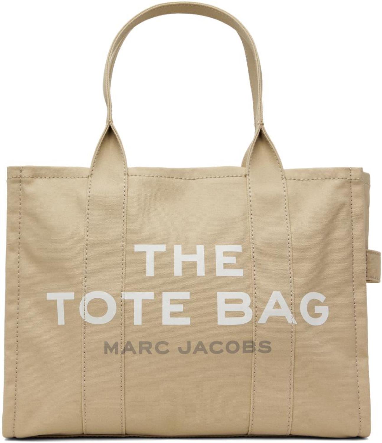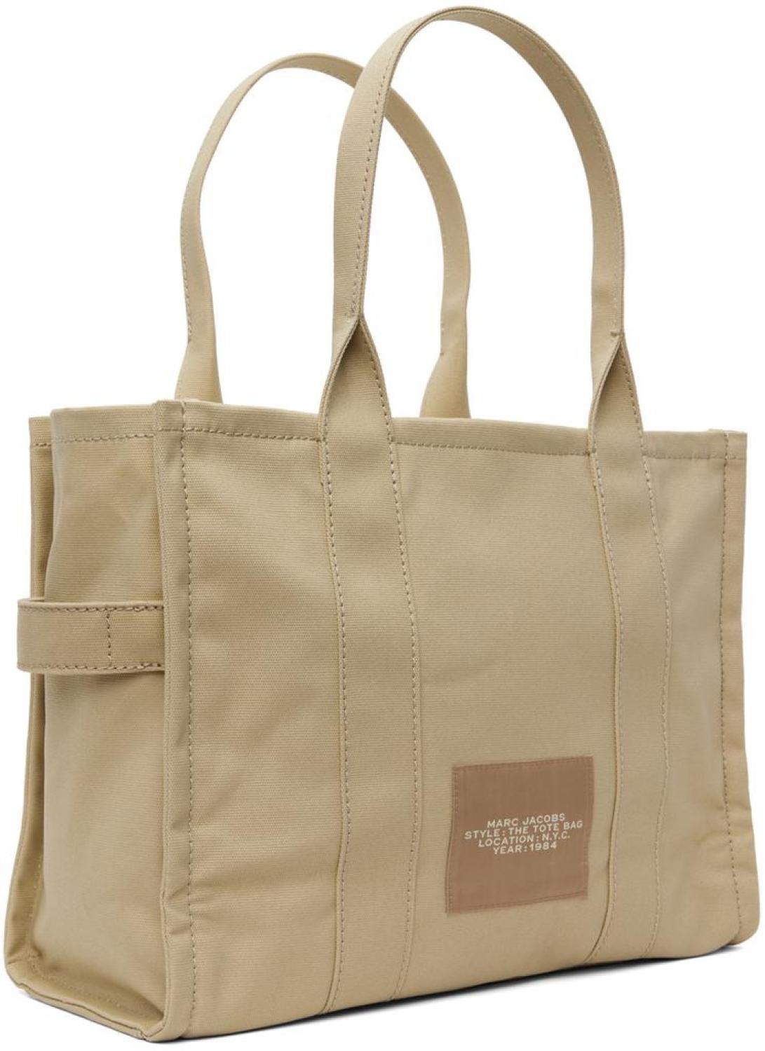 Marc Jacobs Beige Large 'The Tote Bag' Tote Cotton canvas tote in beige. · Twin rolled carry handles · Detachable and adjustable shoulder strap · Logo printed at face · Carry handle at side · Logo patch at back face · Zip closure · Patch and zip pockets at interior · Unlined · H13 x W15.5 x D6 in Supplier color: Beige Textile. Made in Viet Nam. 232190F049051