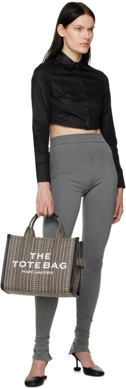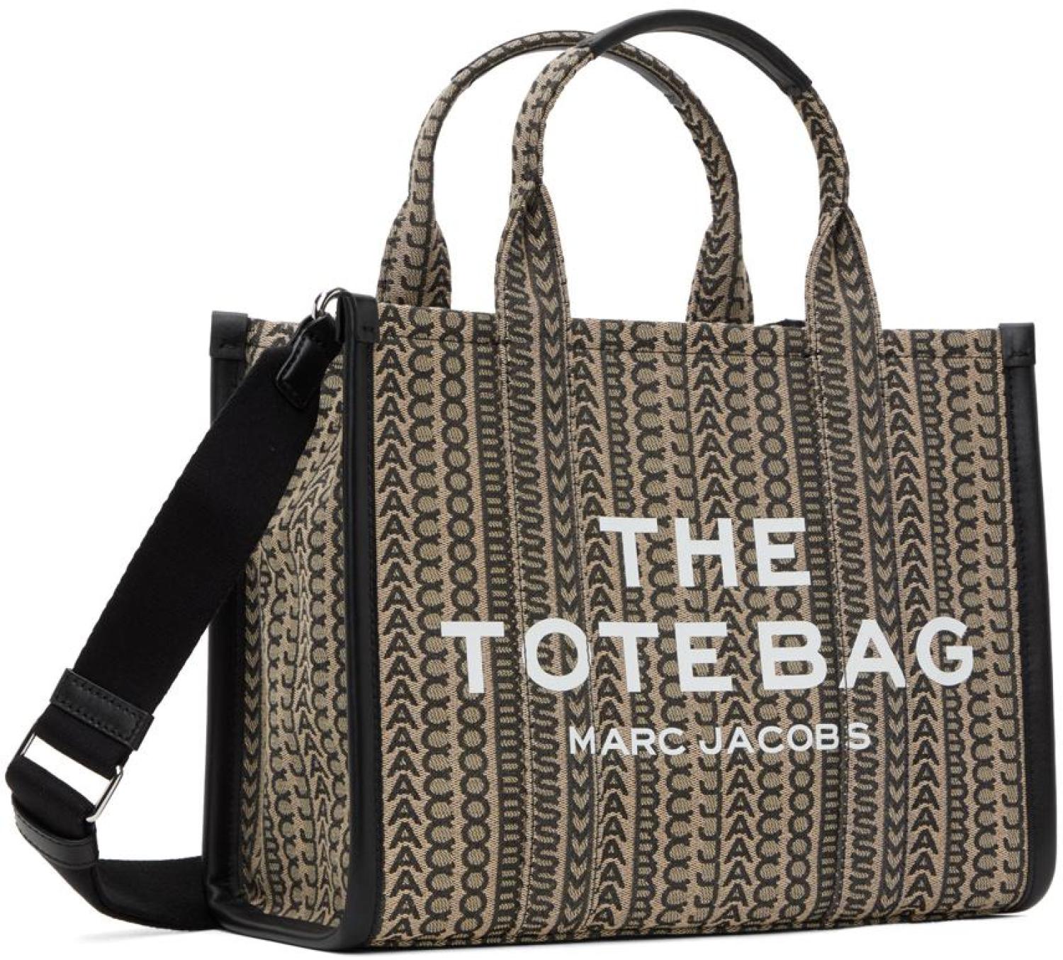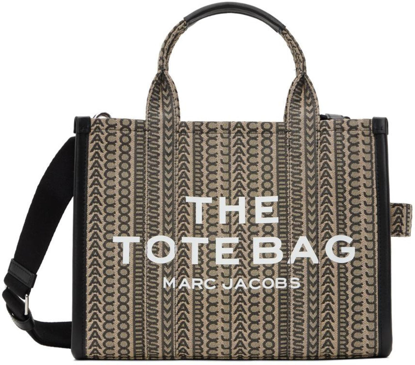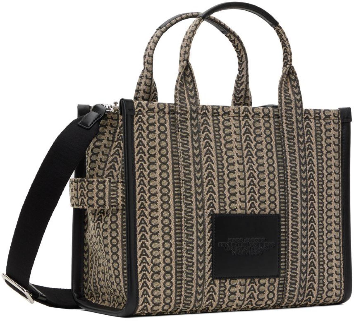 Marc Jacobs Beige 'The Monogram' Medium Tote Cotton canvas tote in beige. Jacquard monogram pattern throughout. · Rolled carry handles at top · Detachable and adjustable webbing shoulder strap · Carry handle at side · Logo bonded at face · Leather logo patch at back face · Zip closure · Card slot and patch pockets at interior · Unlined · Logo-engraved silver-tone hardware · H10 x W13 x D5 in Supplier color: Beige/Multi Textile. Made in Viet Nam. 231190F049011