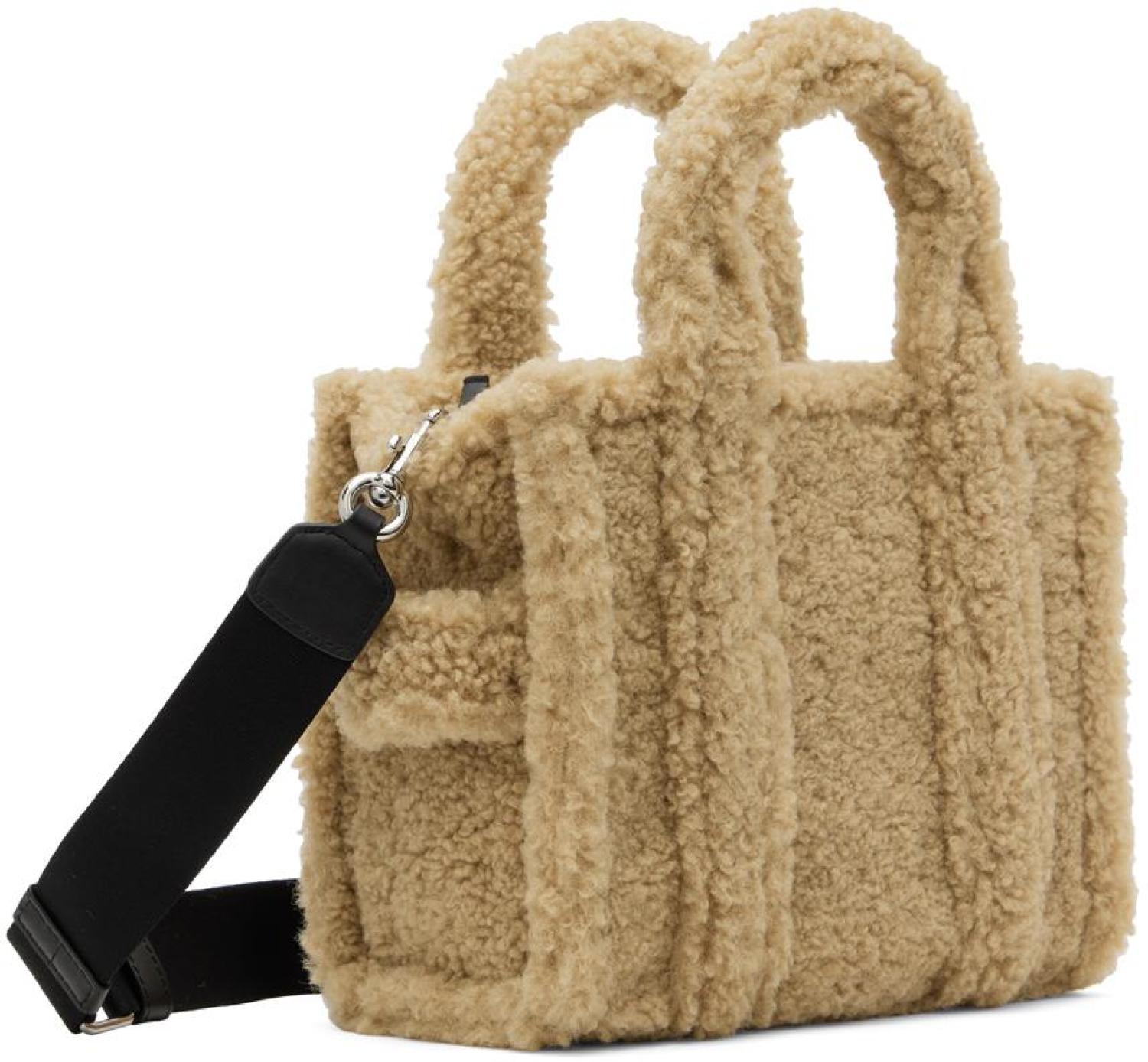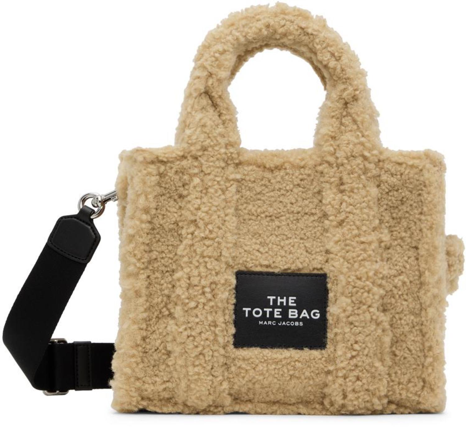 Marc Jacobs Beige 'The Teddy Traveler Small' Tote Sherpa tote in beige. Leather logo patch at face. · Fixed twin carry handles · Detachable and adjustable shoulder strap · Carry handle at side · Zip closure · Twill lining · H8 x W10 x D4 in Supplier color: Beige Textile. Made in Viet Nam. 222190F049074