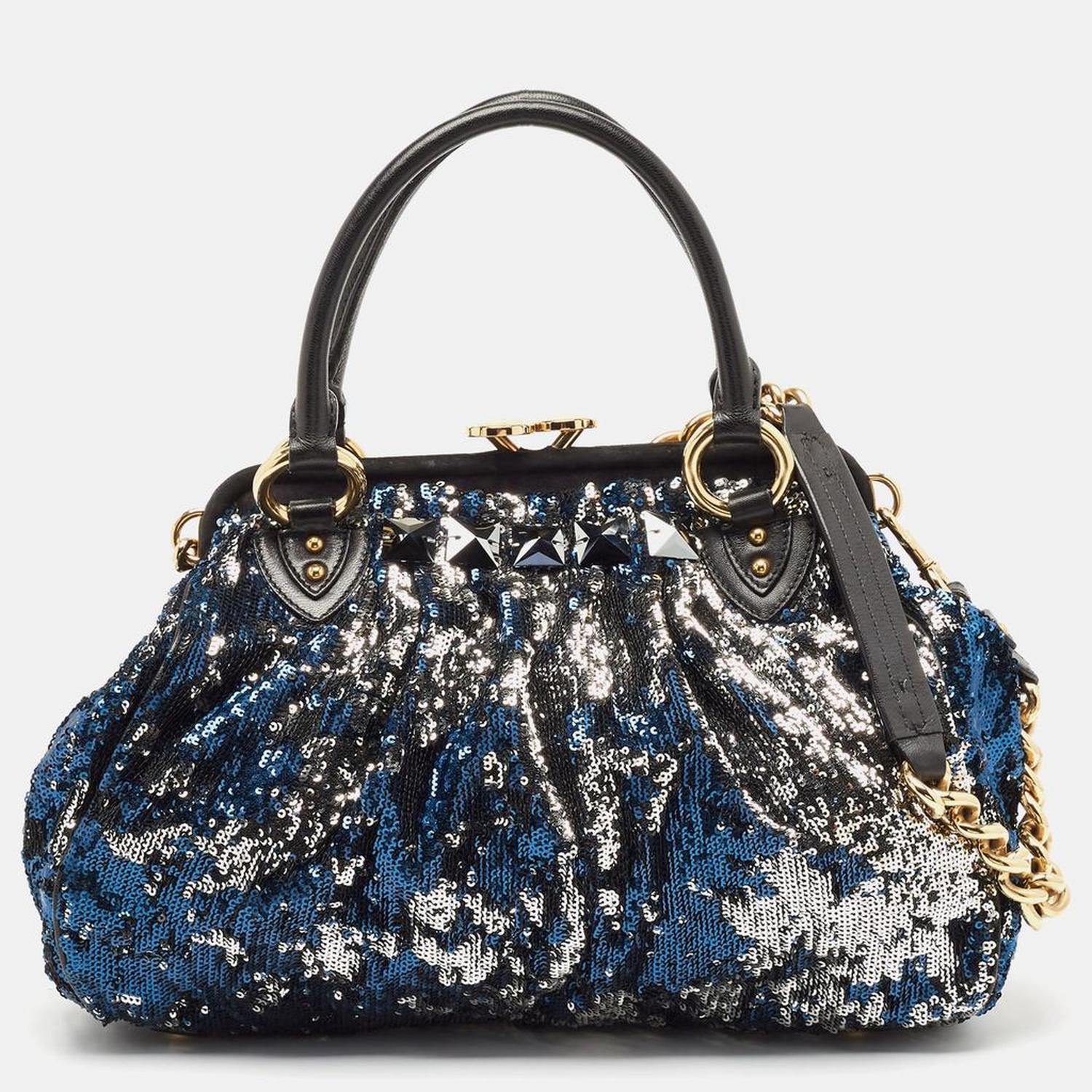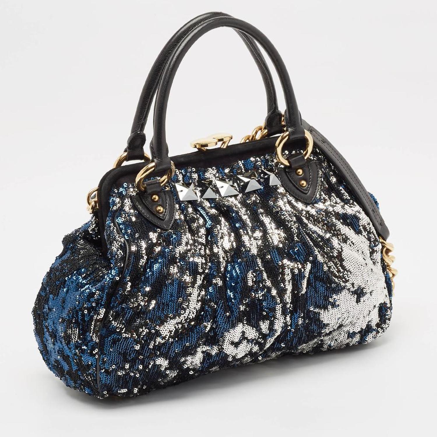 Black/blue Sequin Suede And Leather New York Rocker Stam Satchel