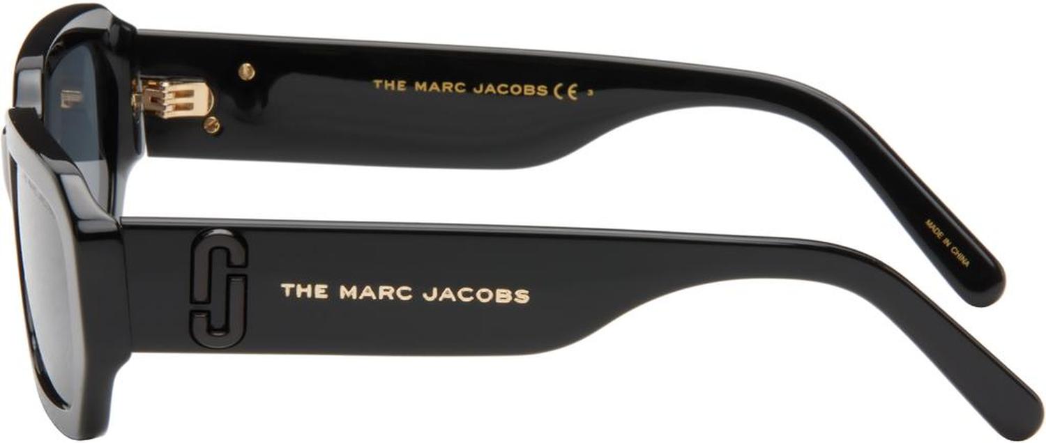 Marc Jacobs Black Rectangular Acetate Sunglasses Rectangular acetate-frame sunglasses in black. · Gray lenses · Logo etched at lens · Integrated nose pads · Logo hardware at temples · Includes case · Size: 56.18 140 Supplier color: Black Acetate. Made in China. 251190F005005