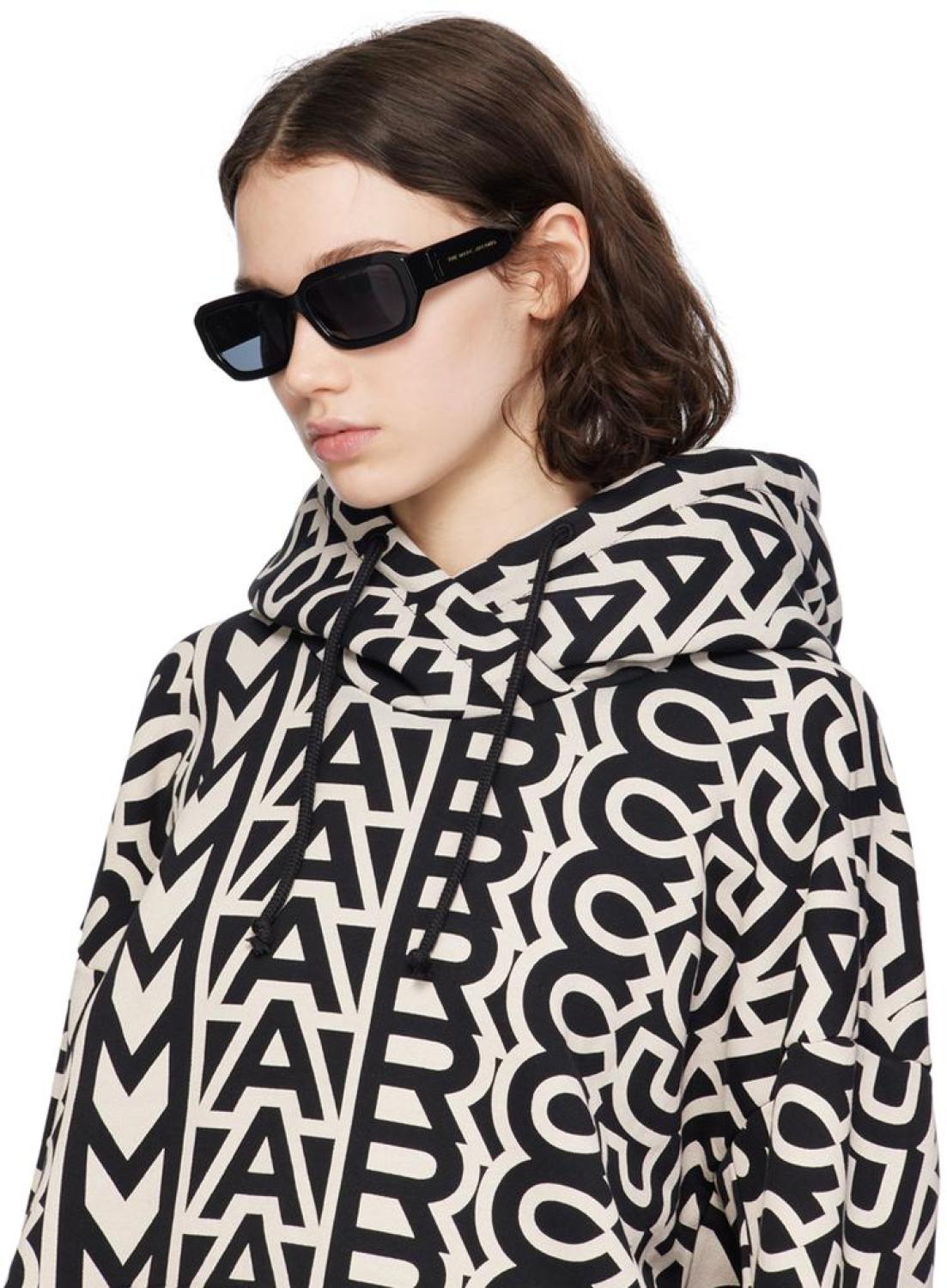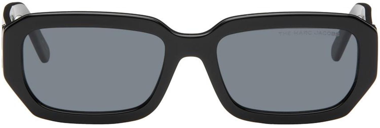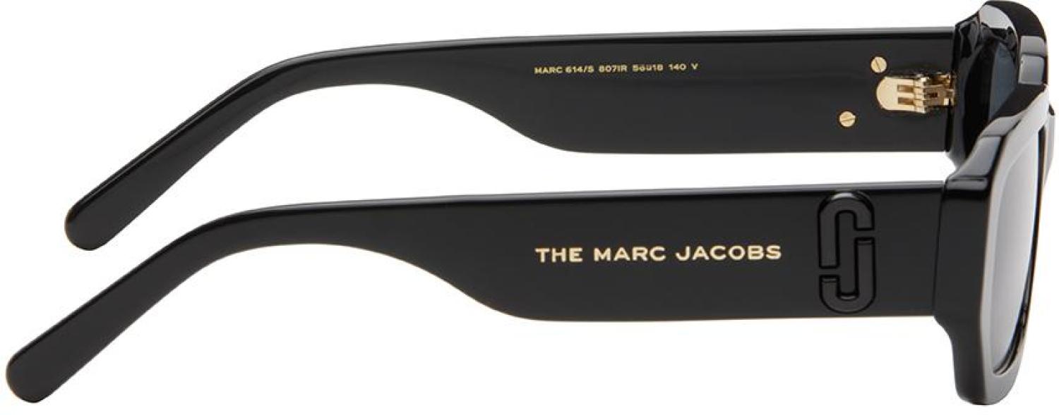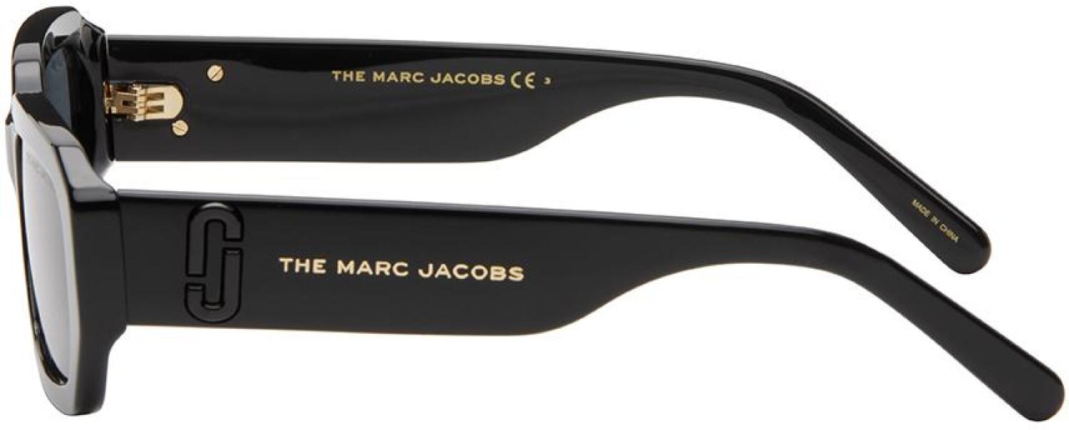 Marc Jacobs Black Rectangular Sunglasses Rectangular acetate-frame sunglasses in black. · Gray lenses · Logo etched at lens · Integrated nose pads · Logo hardware at temples · Gold-tone logo stamp · Includes hardside case · Size: 56.18 140 Supplier color: Black Acetate. Made in China. 242190F005012