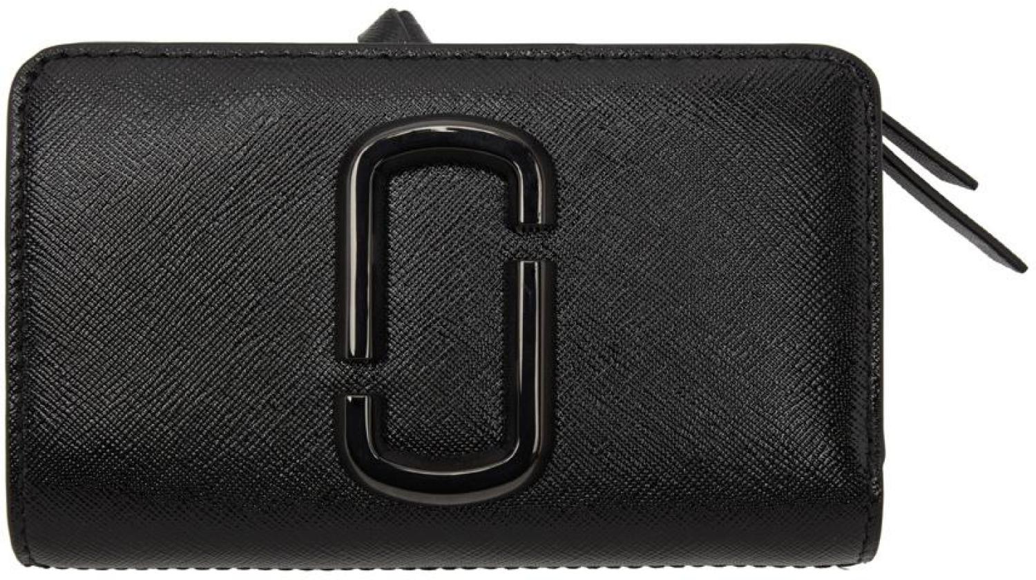 Saffiano leather bifold wallet in black. Logo hardware at face.