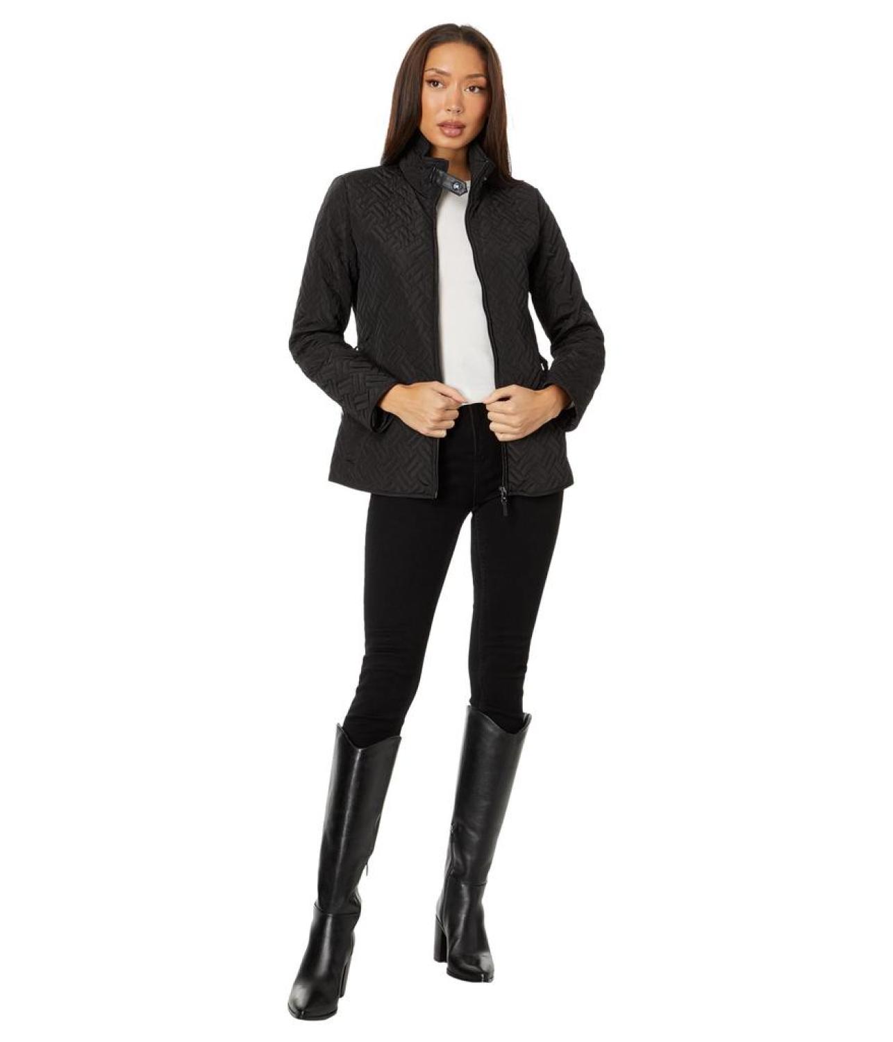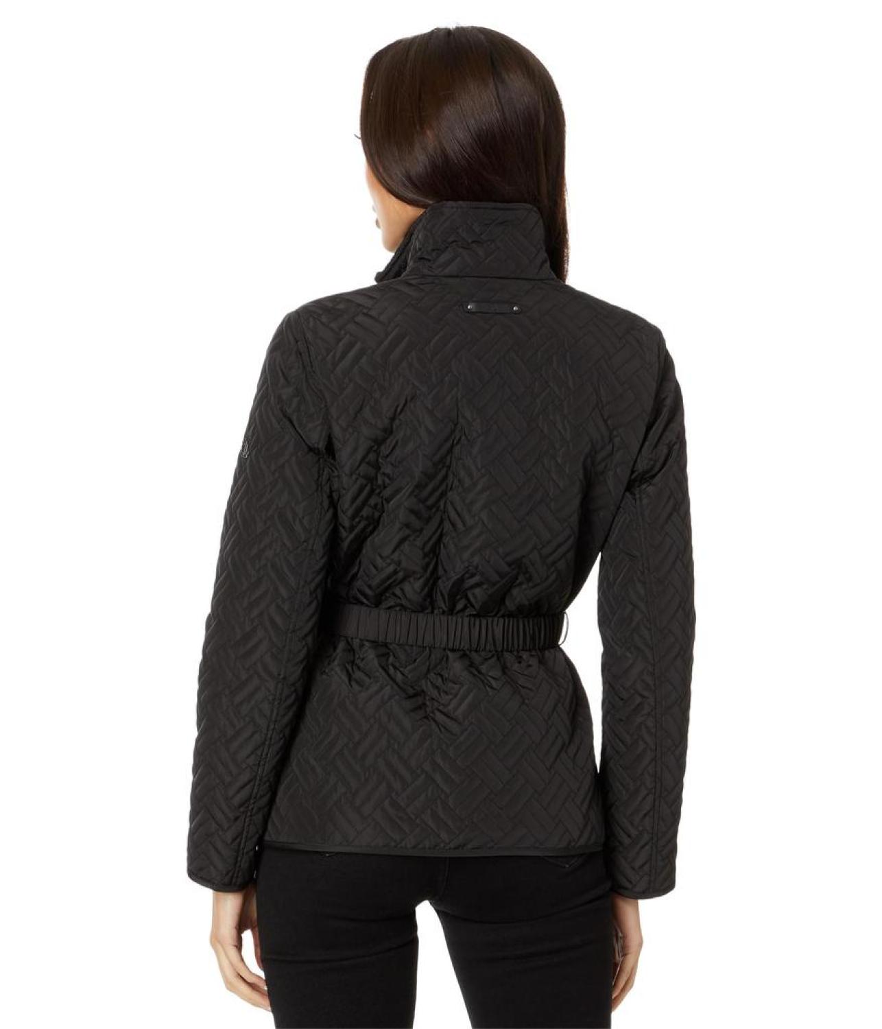 Beat the chilly winds outdoors on a cold day by wearing LAUREN Ralph Lauren® Blanket Quilt Belted Metal Buckle jacket. A high-rise collar has a snap-button closure at the front. The jacket features full sleeves, a waist belt with buckle closure, and front-hand pockets. It has a center-front zip closure.