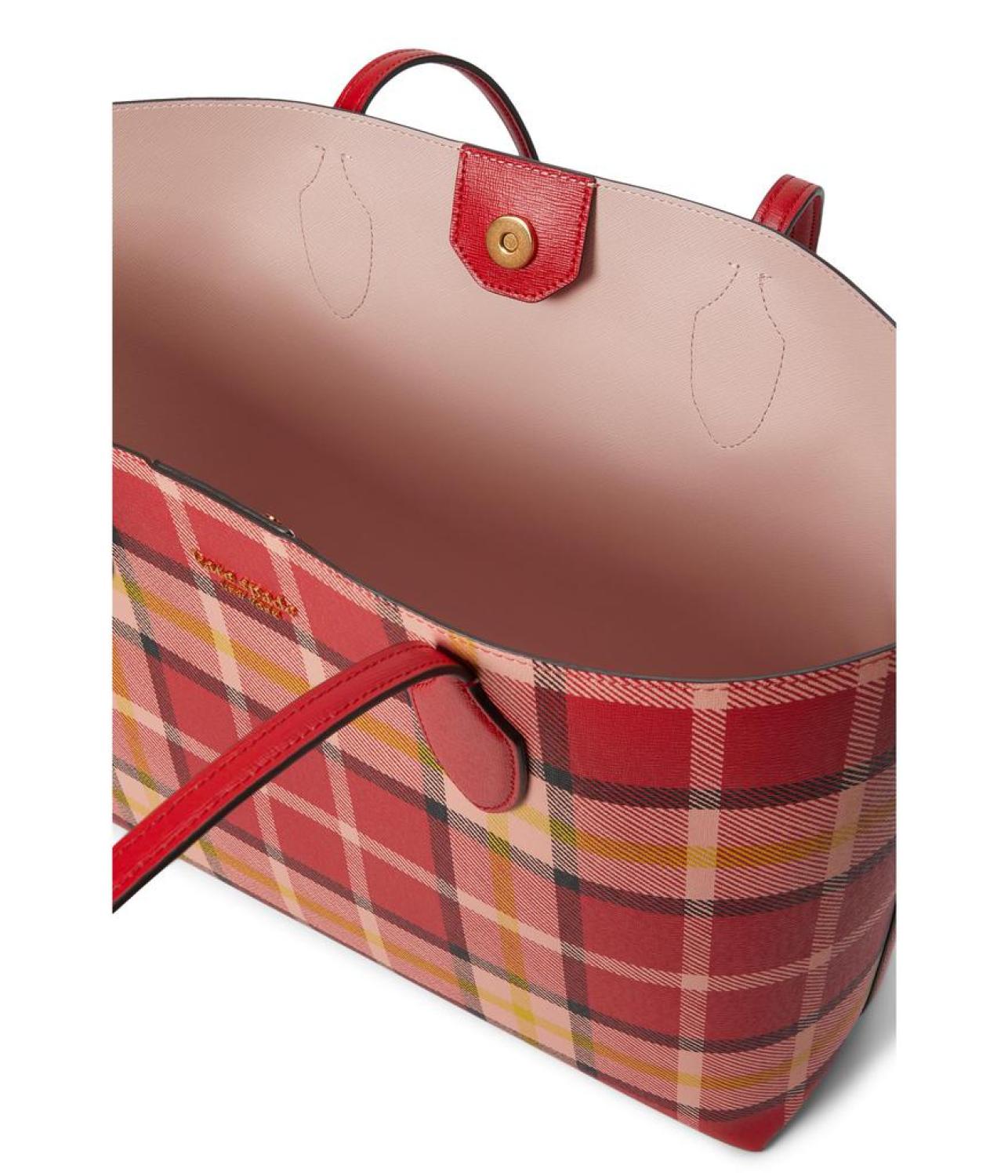Embrace your dapper look carrying the Kate Spade New York® Bleecker Museum Plaid Printed PVC Large Tote. This handbag features magnetic snap closure, two top handles, and one dust bag included.