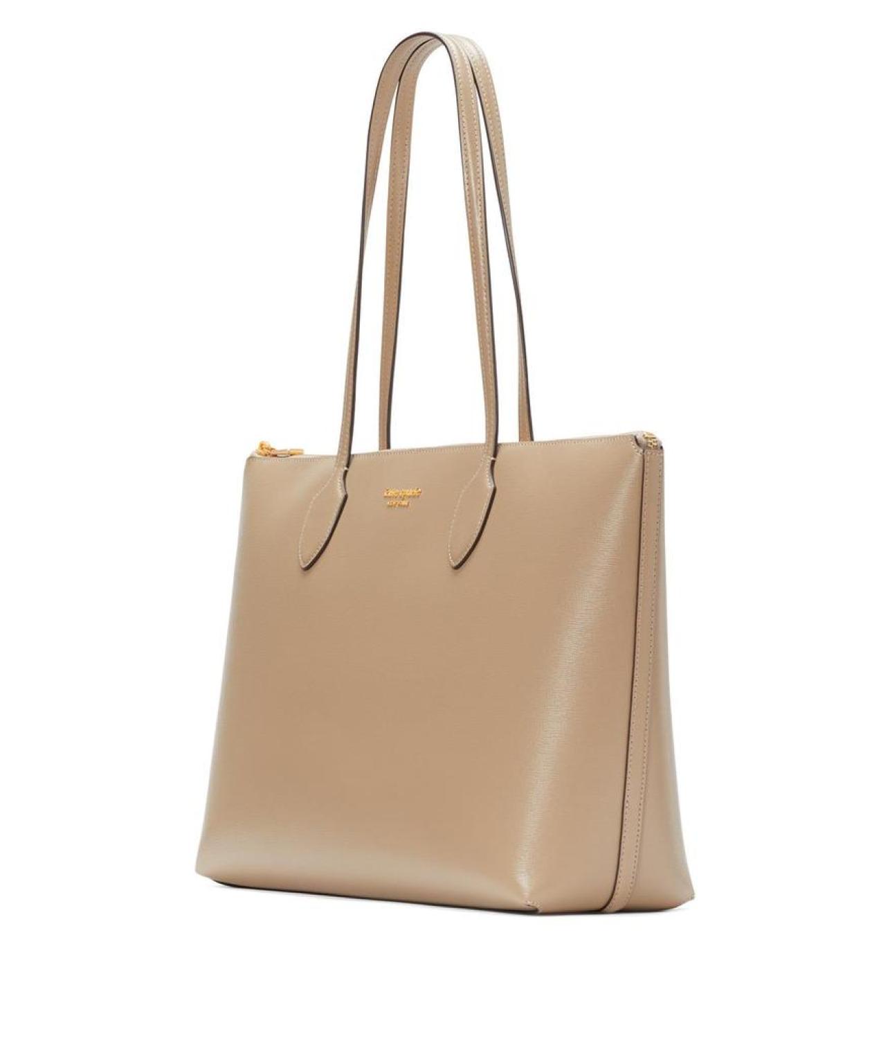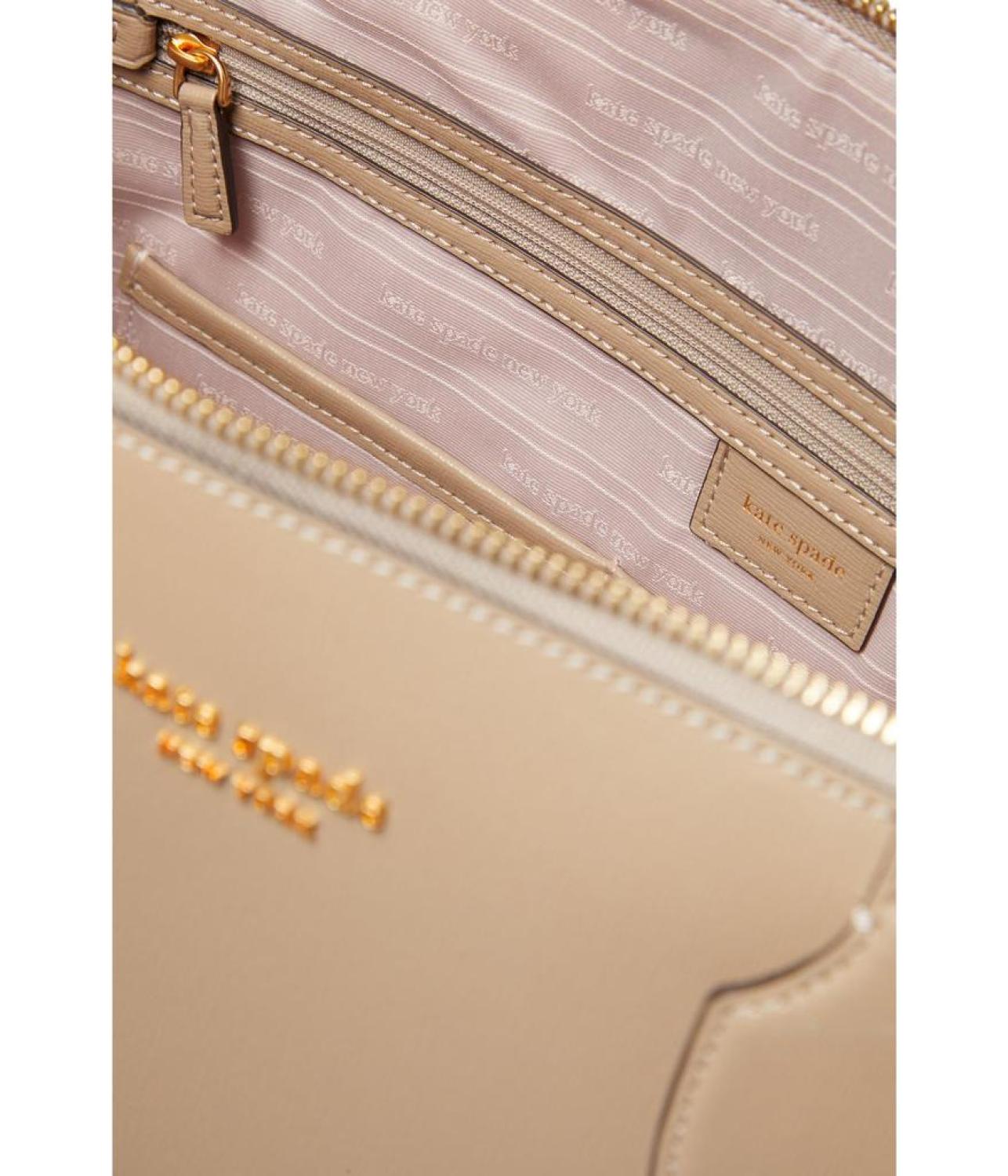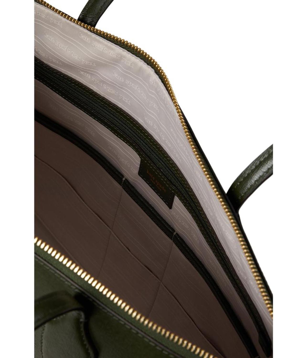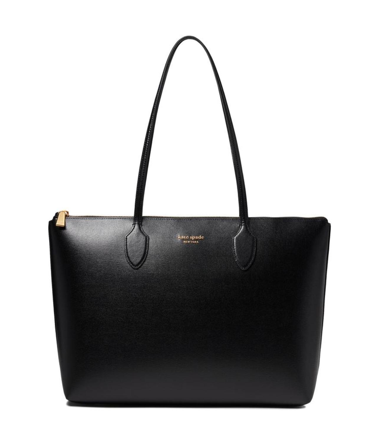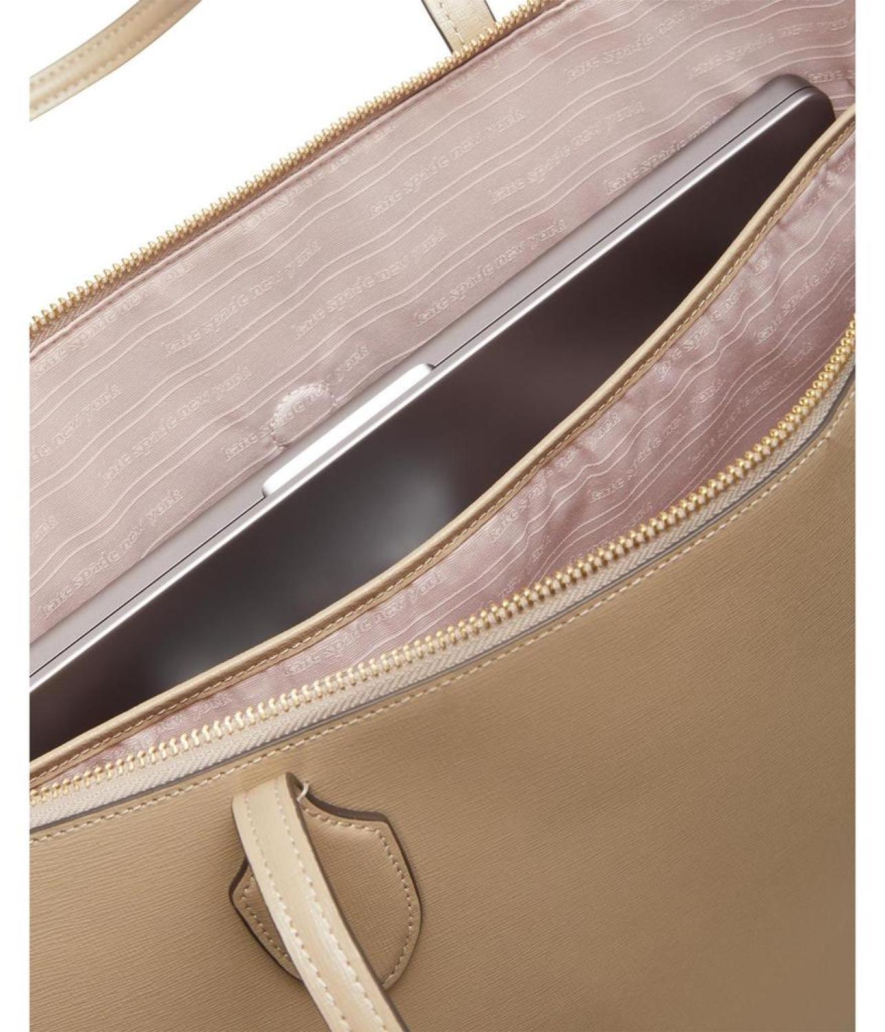 • Keep your belongings safe inside the Kate Spade New York® Bleecker Saffiano Leather Large Zip Top Tote Handbag. Crafted from leather, this bag has a lot of compartments to store your large and small belongings.