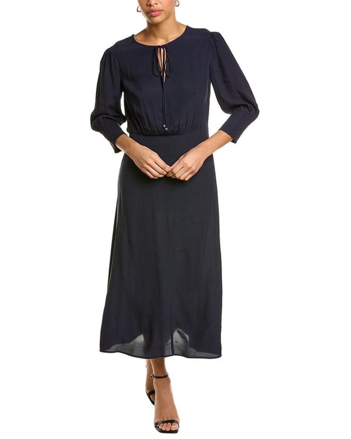Introducing the BOSS Hugo Boss Daflori Midi Dress, a stunning addition to your wardrobe. This exquisite dress embodies the elegance and sophistication that the BOSS Hugo Boss brand is known for. Dressed in a rich navy shade, this midi dress exudes timeless allure. The 3/4-length sleeves are complemented by smocked cuffs, adding a touch of femininity to the overall design. With a shirred waist, this dress perfectly accentuates your figure, ensuring a flattering fit. The tie neck closure adds a hint of vintage charm, while the left side seam zipper allows for easy and convenient dressing. Crafted from 100% viscose, this dress offers supreme comfort while maintaining a luxurious feel. With a length of approximately 50 inches from shoulder to hem, this midi dress strikes the perfect balance between elegance and practicality. Whether you're attending a formal event or enjoying a night out, this dress is sure to turn heads. Care for this garment is a breeze, as it is machine washable. No need to worry about complicated cleaning instructions. Simplify your life with this effortlessly stylish dress. Imported with the utmost craftsmanship, the BOSS Hugo Boss Daflori Midi Dress guarantees superior quality that you can rely on. Elevate your style and make a statement with this must-have piece from the BOSS Hugo Boss collection.