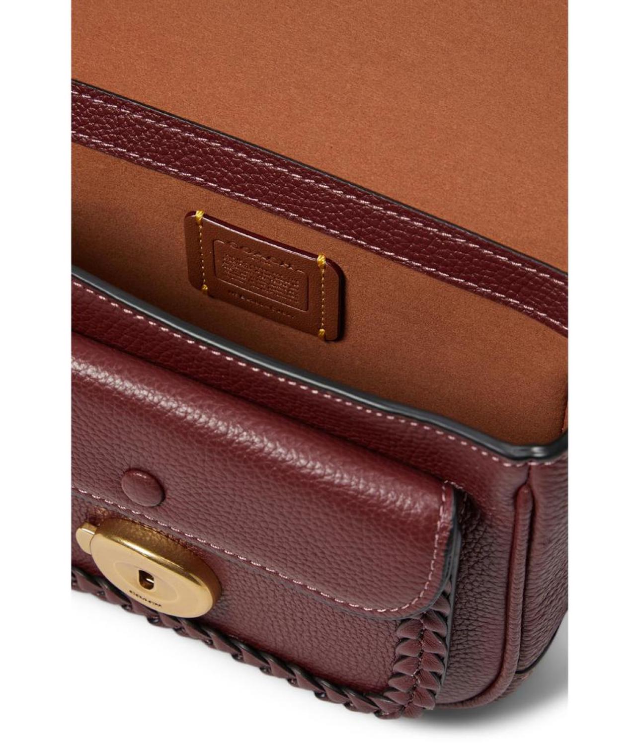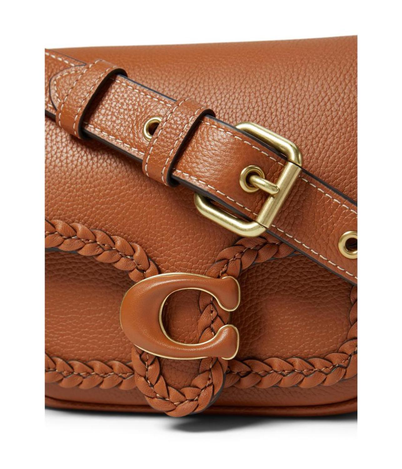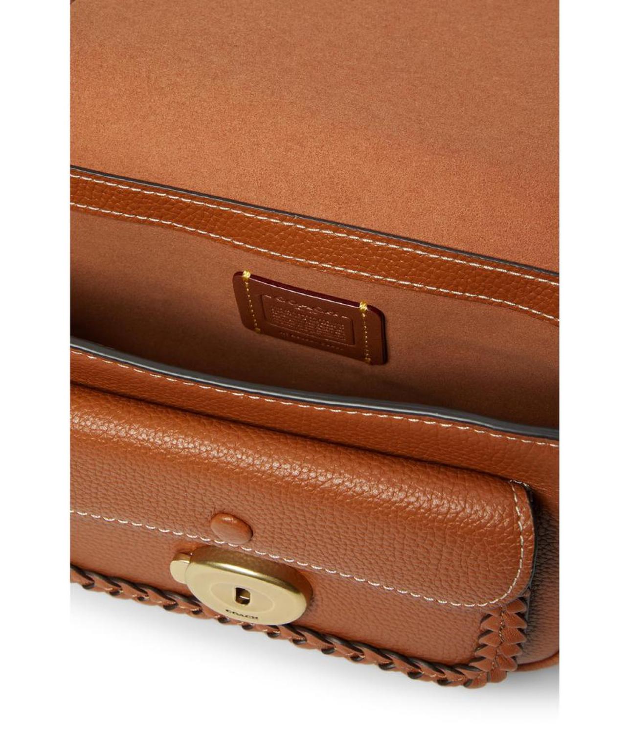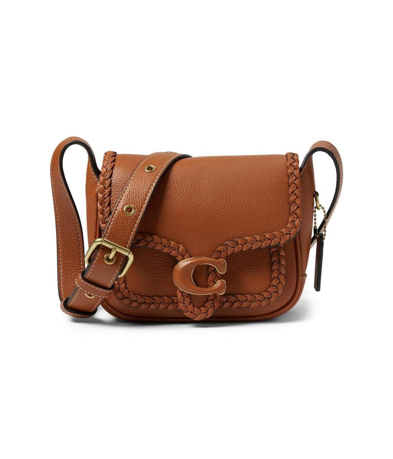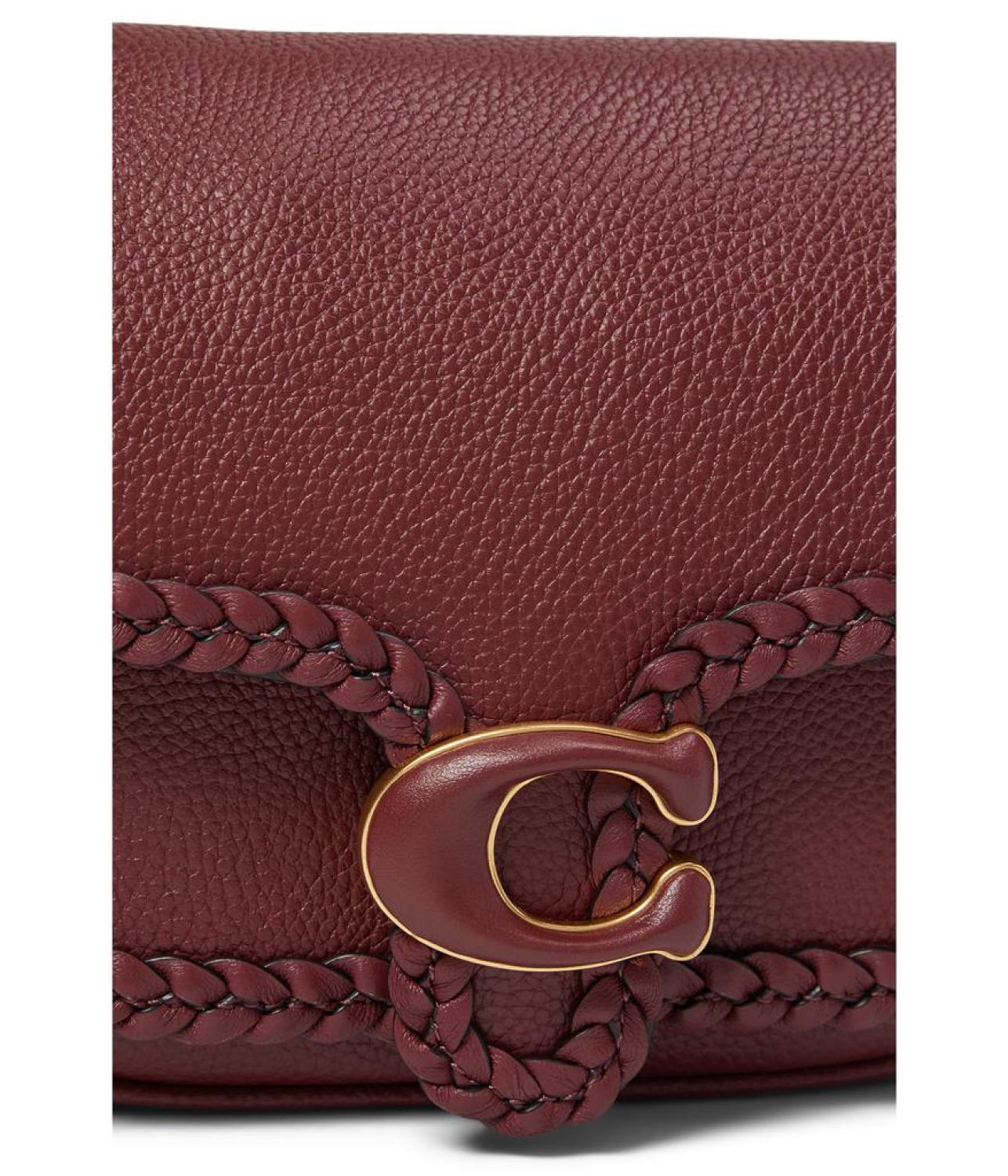 Sport your iconic look carrying the COACH® Braided Leather Trim Tabby Messenger 19. This handbag comes with one adjustable crossbody strap and magnetic flap closure. The leather tag with detailing showcases a classic touch.