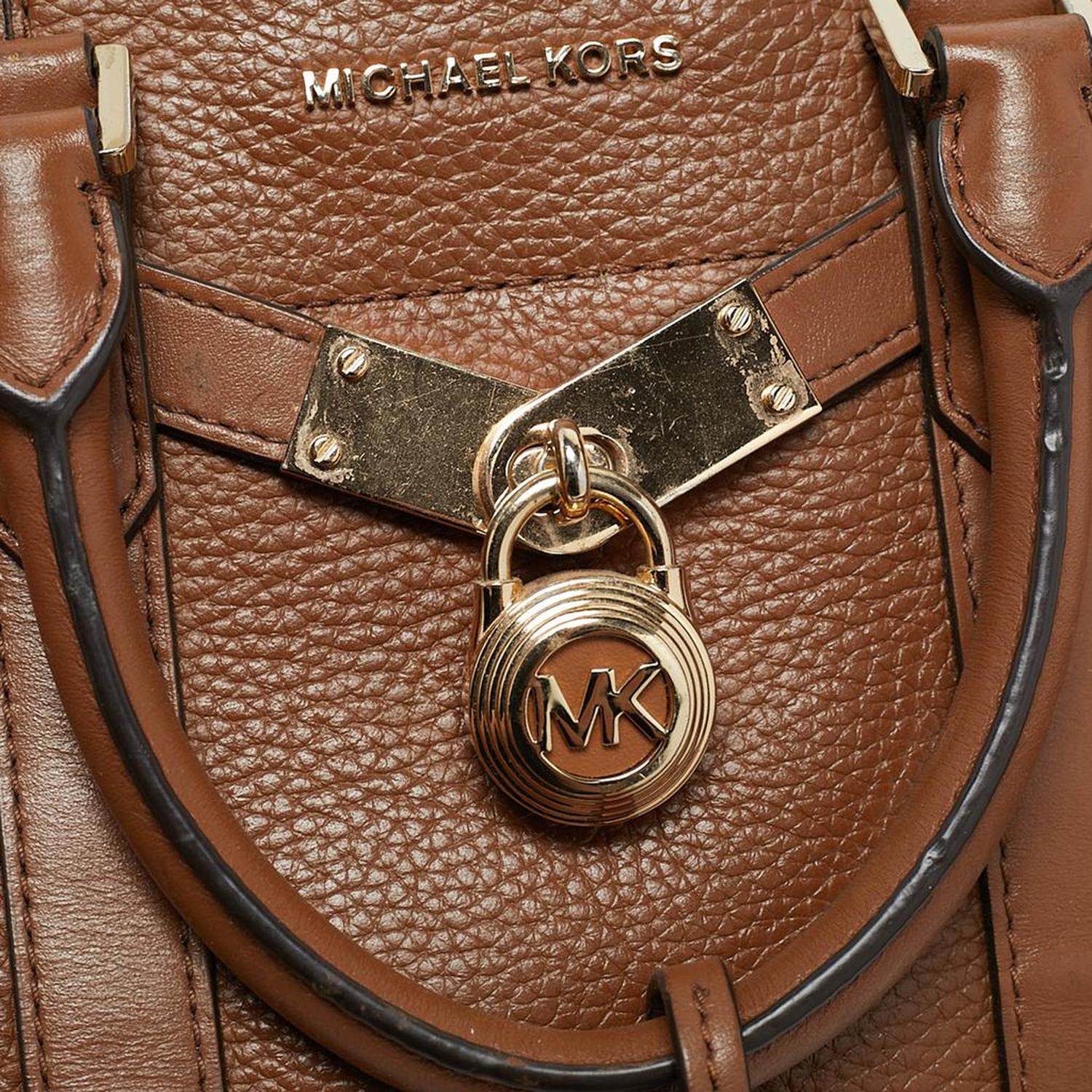 • The dual handles and the shoulder strap makes this Michael Kors Hamilton tote ideal for everyday use. Constructed from leather it is adorned with a branded plaque on the front and features gold tone hardware. The fabric lined interior is equipped with different pockets to safely house your essentials of variable sizes.