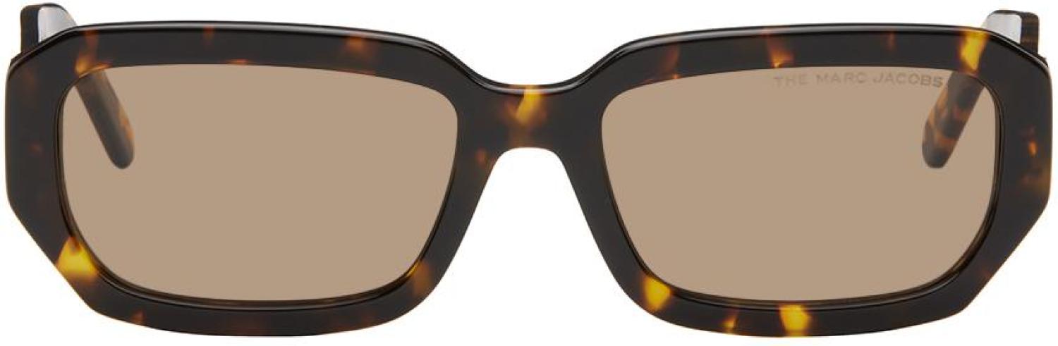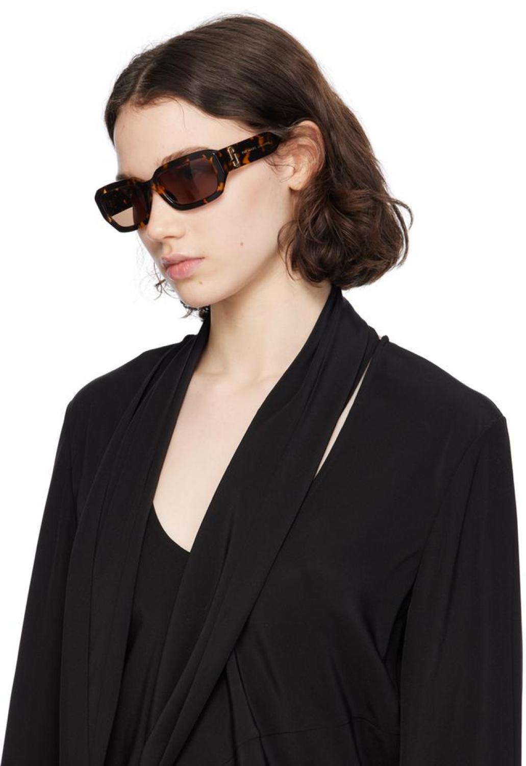 Rectangular tortoiseshell acetate-frame sunglasses in tones of brown.