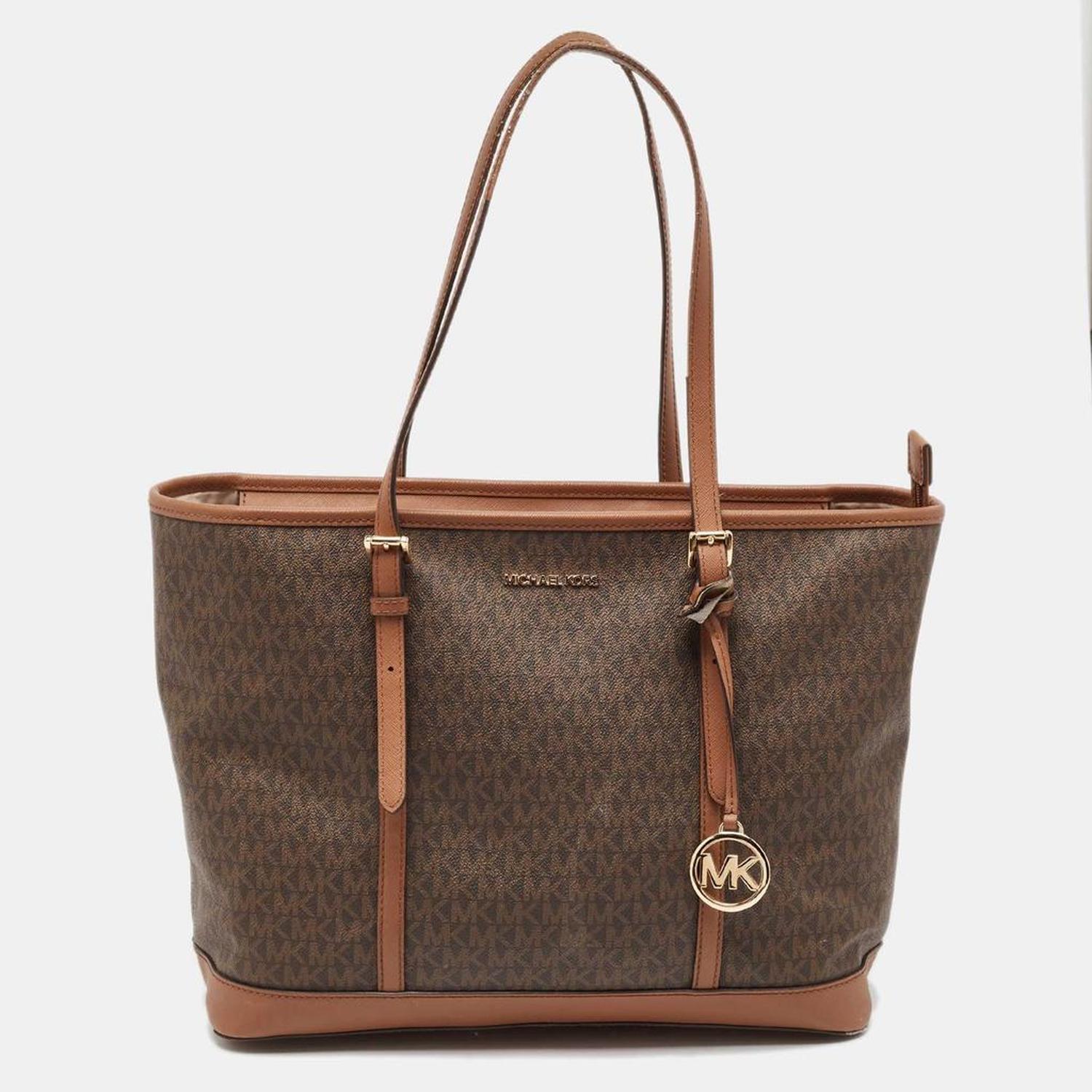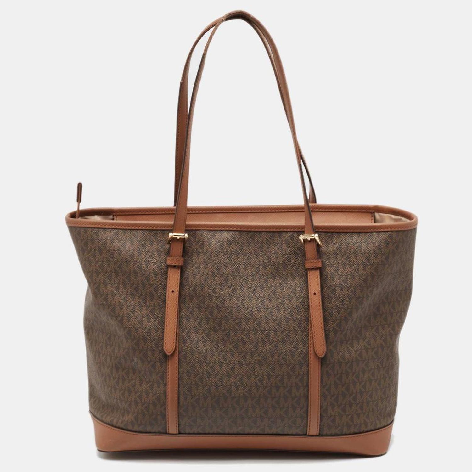 Brown Signature Coated Canvas Jet Set Travel Tote