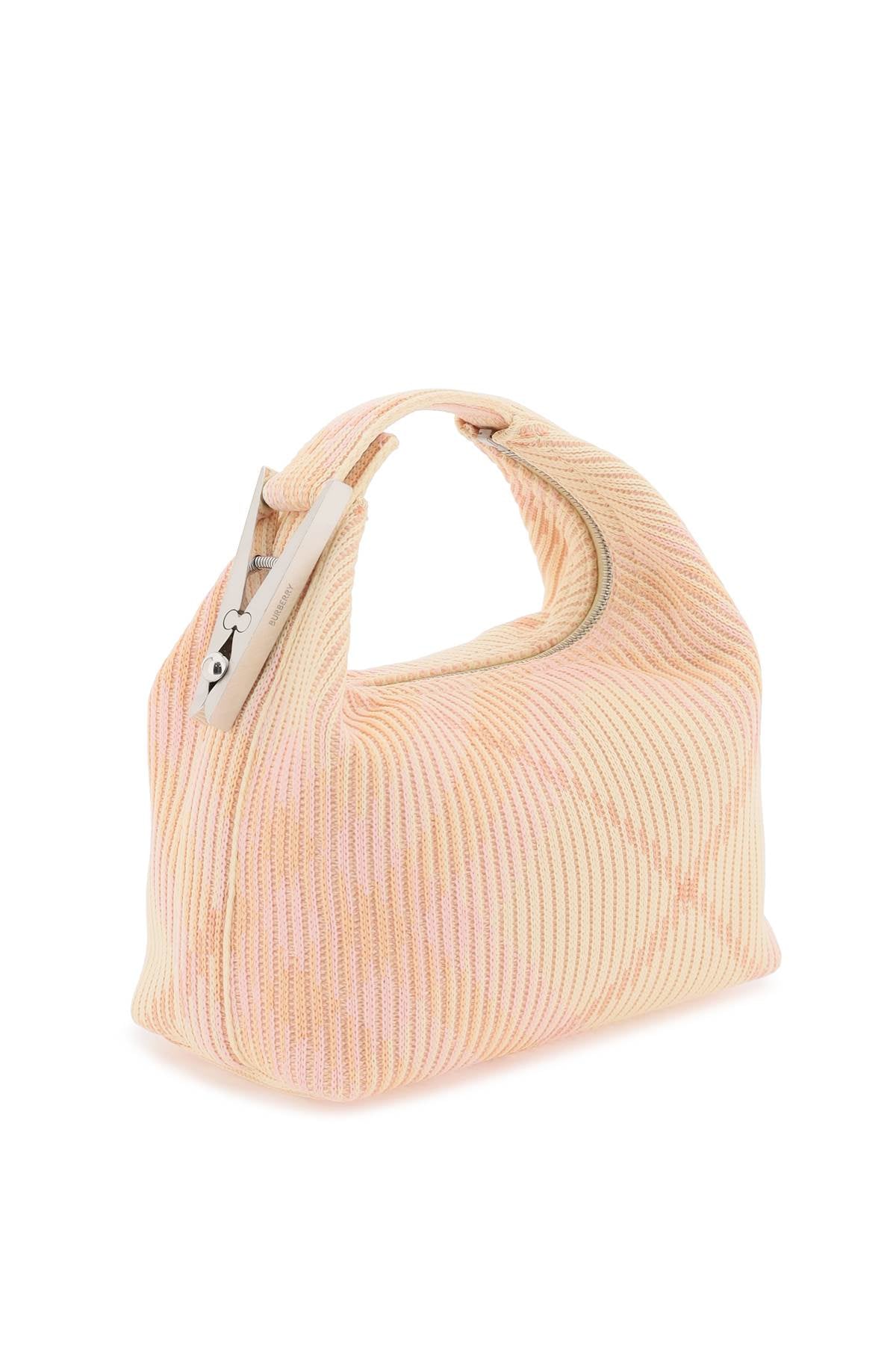 • The Peg mini bag is made of technical mesh with a Burberry Check pattern and features a handle with a metal clip detail. It has a zip closure, an unlined interior, and silver-tone metallic accessories. Bag Length = 22 cm, Bag Height = 13 cm, Handle Height = 11 cm,