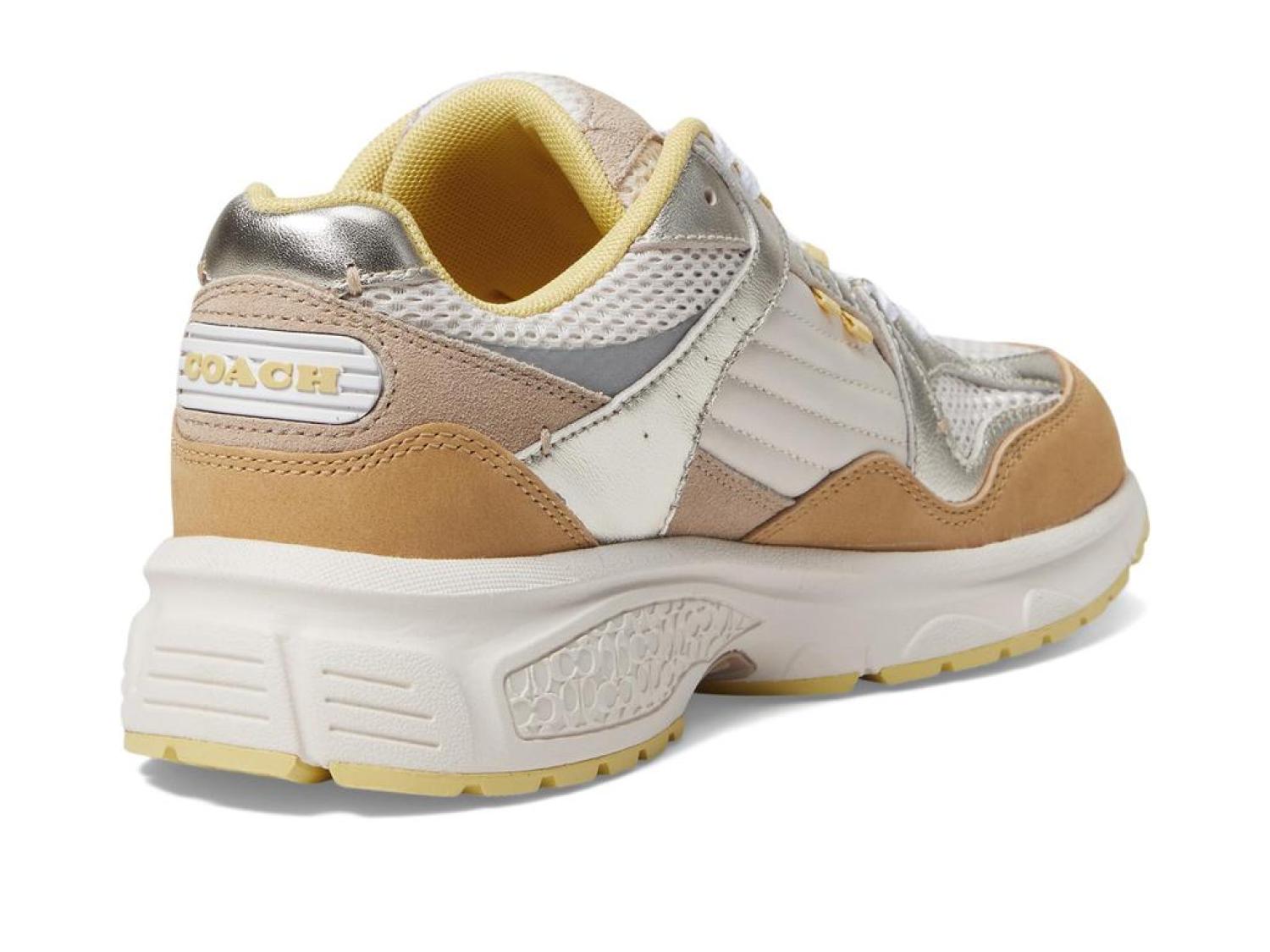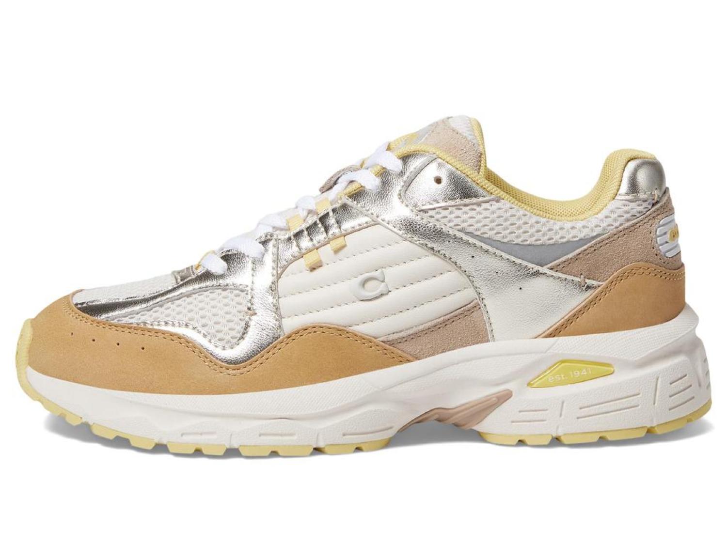Outshine the crowd in your  captivating style wearing the COACH® C301 Mesh and Laminato Sneakers. The low-top footwear features metallic leather, suede and mesh upper  construction with classic round toe silhouette.
