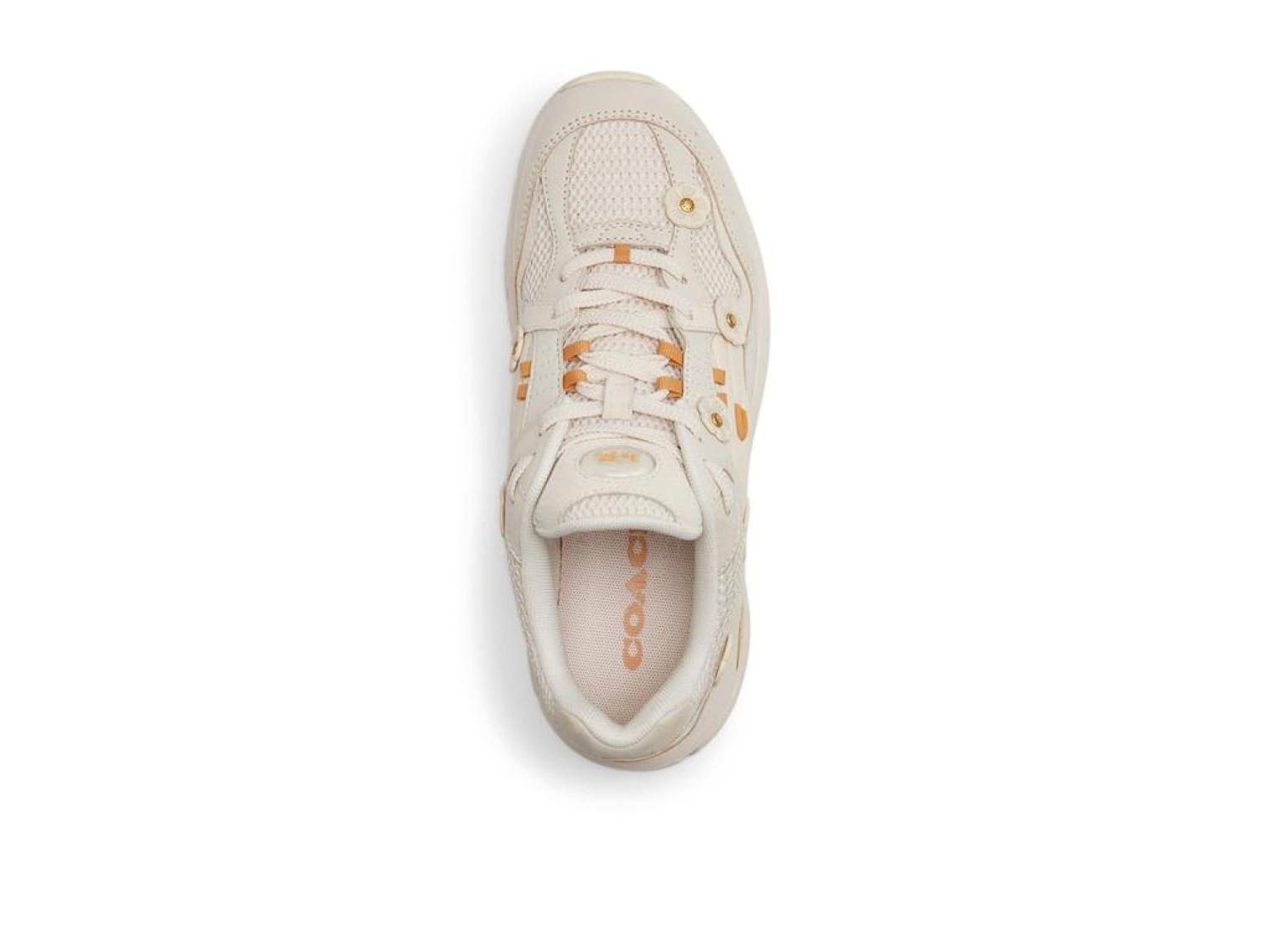 Elevate your classic sneaker style in the COACH® C301 Sneaker with Tea Rose. These sneakers feature a classic lace-up closure in a round toe silhouette, tea rose appliqué throughout, a suede, leather and mesh upper, and a fabric lining and insole.