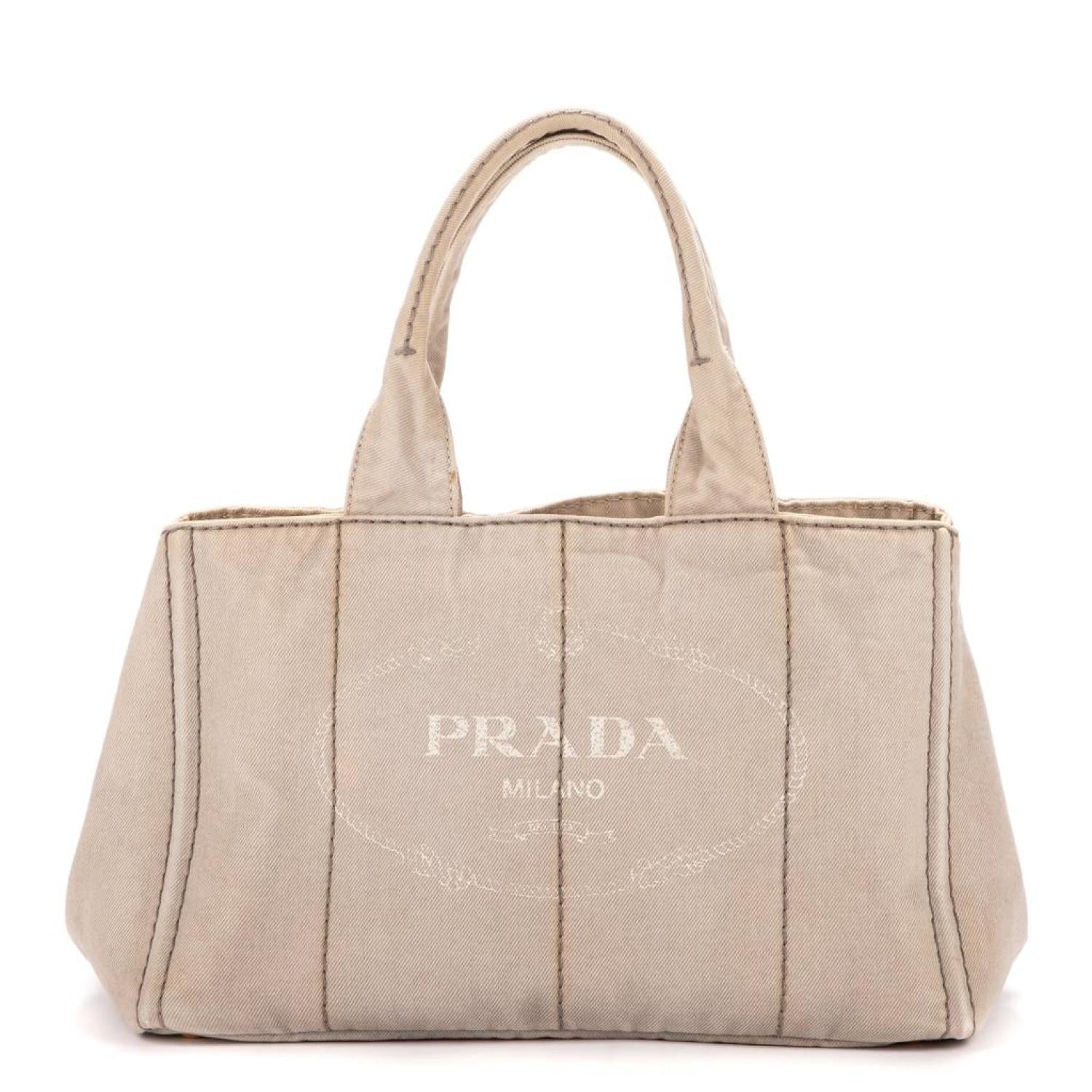 • Prada Handbag in Ivory Canvas fabric and Gold hardware. Dimensions - 34*21*20cm. Serial number - NONE. Inclusions - None.