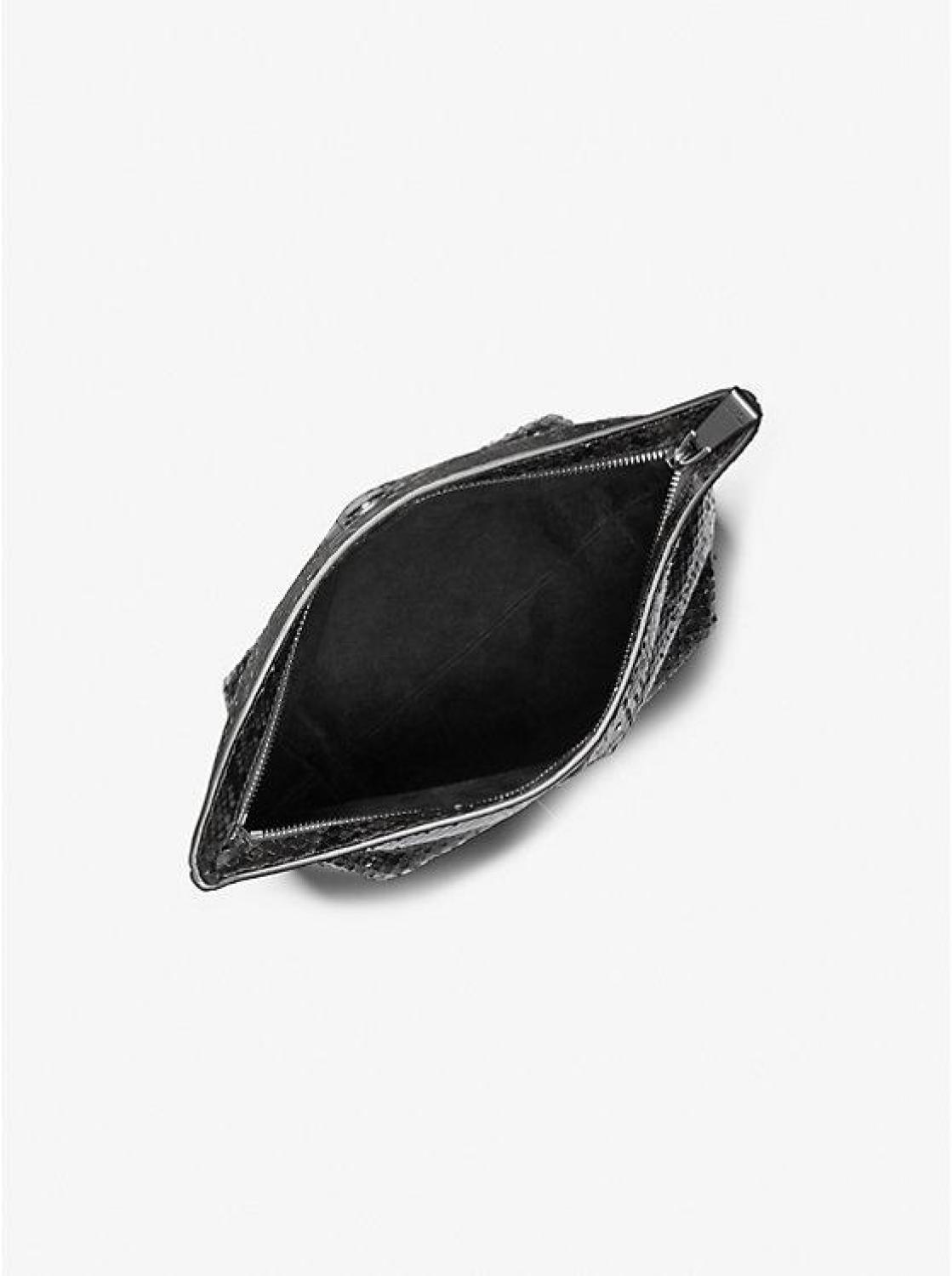 The Candace is a sleek clutch with a free-spirited sensibility. Crafted in Italy from python-embossed leather, it features a foldover design and is finished with a gunmetal zipper closure. Lined with an ultra-soft goatskin interior, it will wear beautifully with every use. Made in Italy. • Clutch • Python embossed leather • 100% leather • Silver-tone hardware • 9”W X 13”H X 1.5”D • Interior details: zip pocket • Lining: 100% suede • Zip/snap fastening • Made in Italy • Clutch • Python embossed leather • 100% leather • Silver-tone hardware • 9”W X 13”H X 1.5”D • Interior details: zip pocket • Lining: 100% suede • Zip/snap fastening • Made in Italy