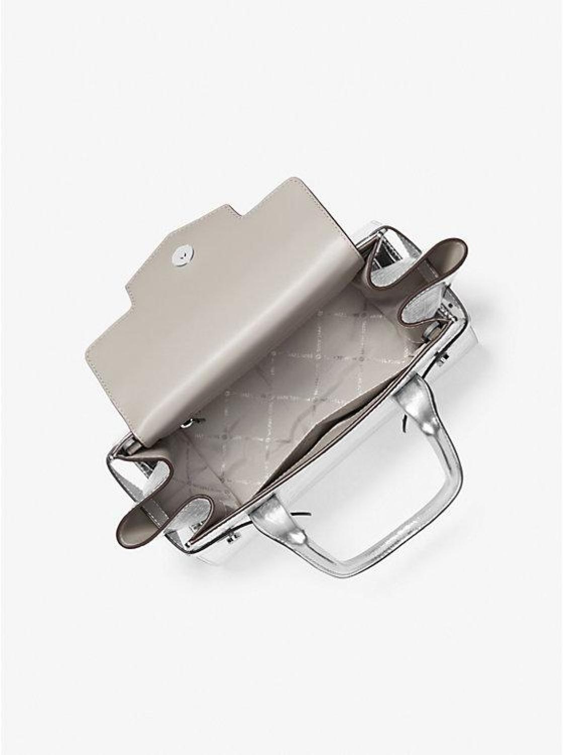 Carmen Medium Metallic Crocodile Embossed Belted Satchel