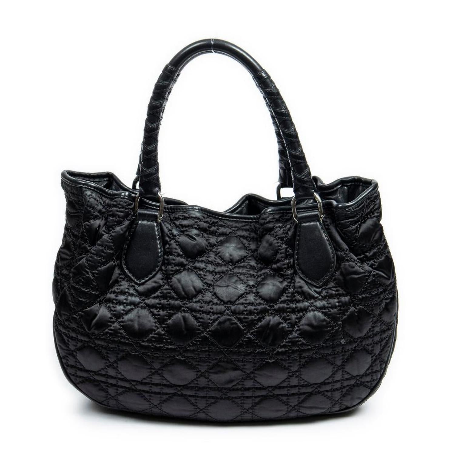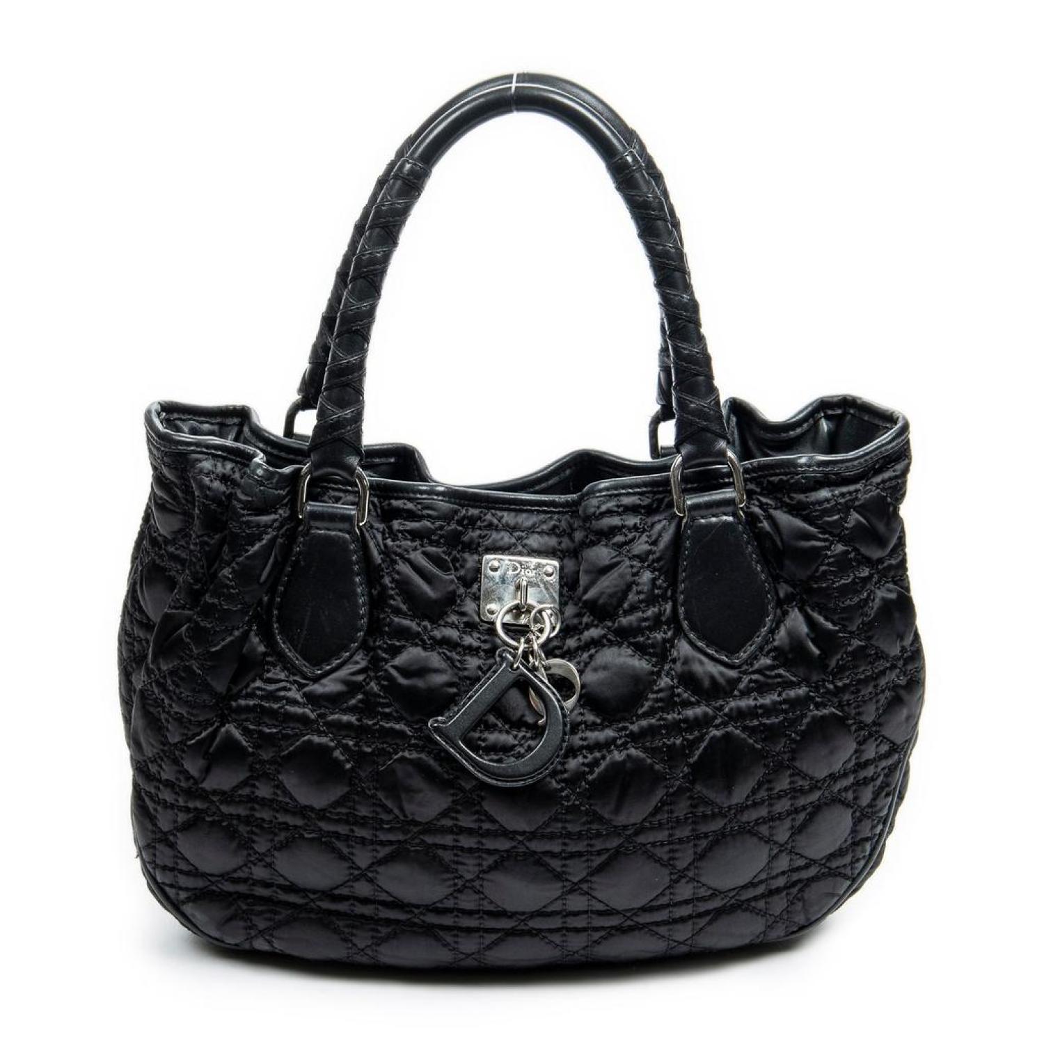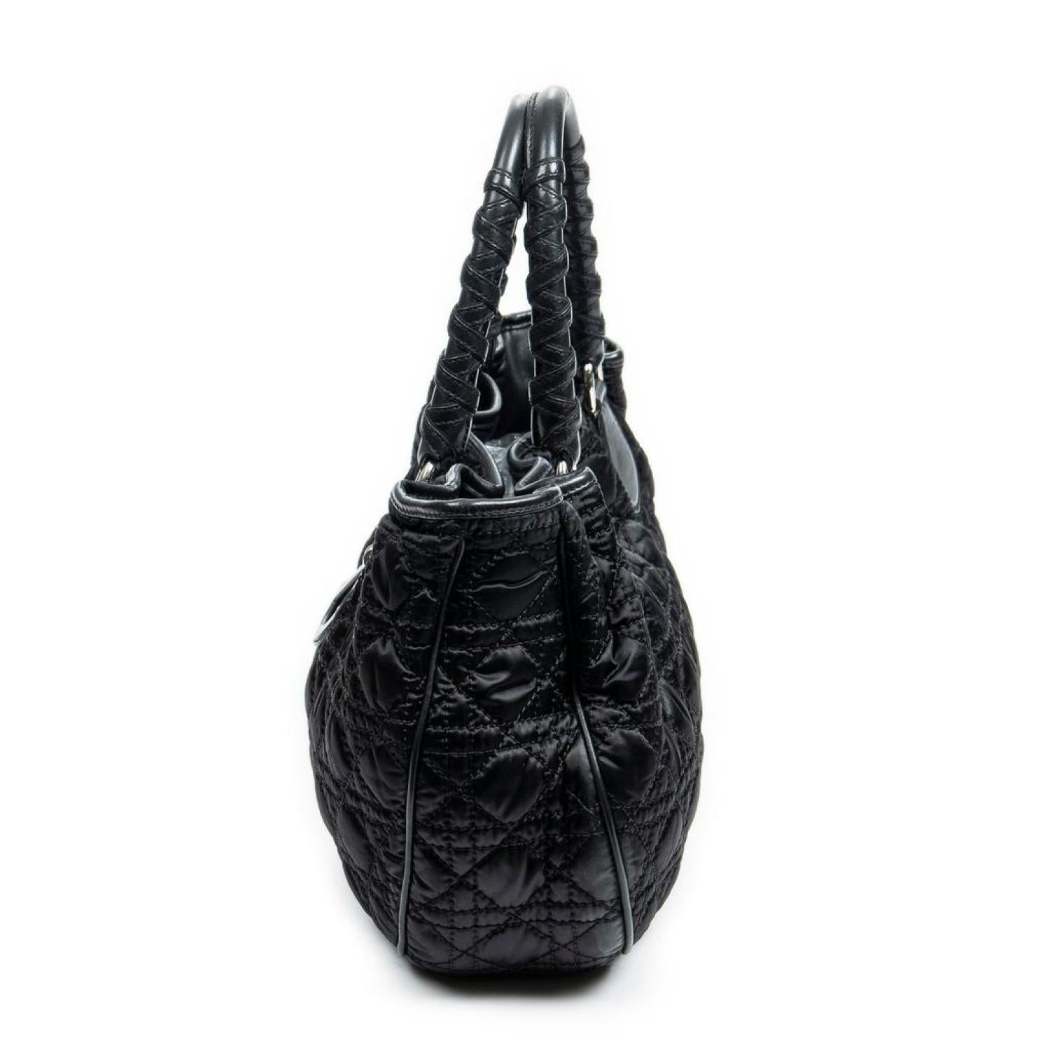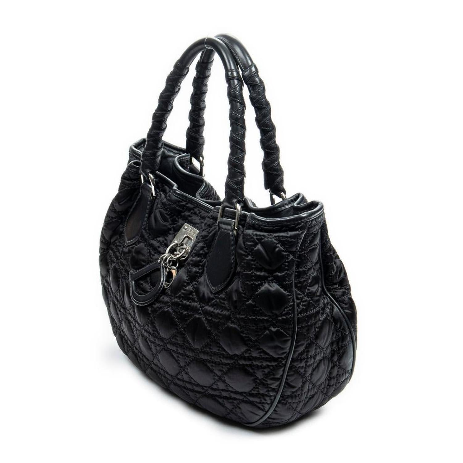Dior Handbag in Black Cannage Nylon Canvas and Silver hardware. Dimensions - 31*23*9cm. Serial number - 07-BO-1018. Inclusions - card, charms.