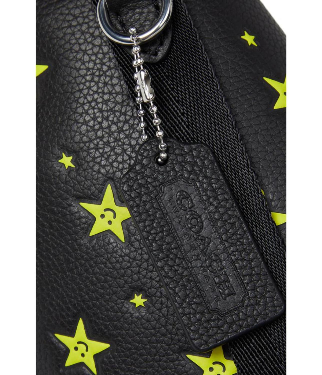 Looking for a trendy and convenient way to carry your everyday essentials? Look no further than the COACH™ Charter Belt Bag 7 in Star Printed Leather! It has a zippered closure and features an adjustable crossbody strap to carry it with ease. The bag also includes a branded keychain for added style.