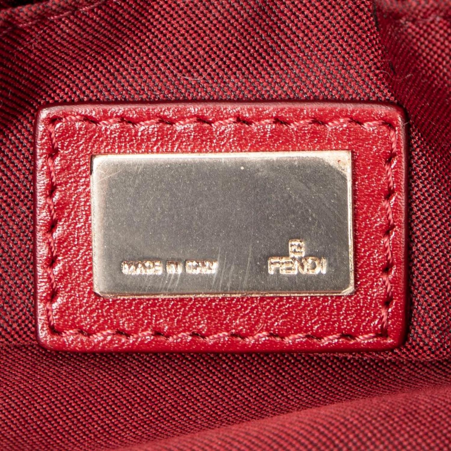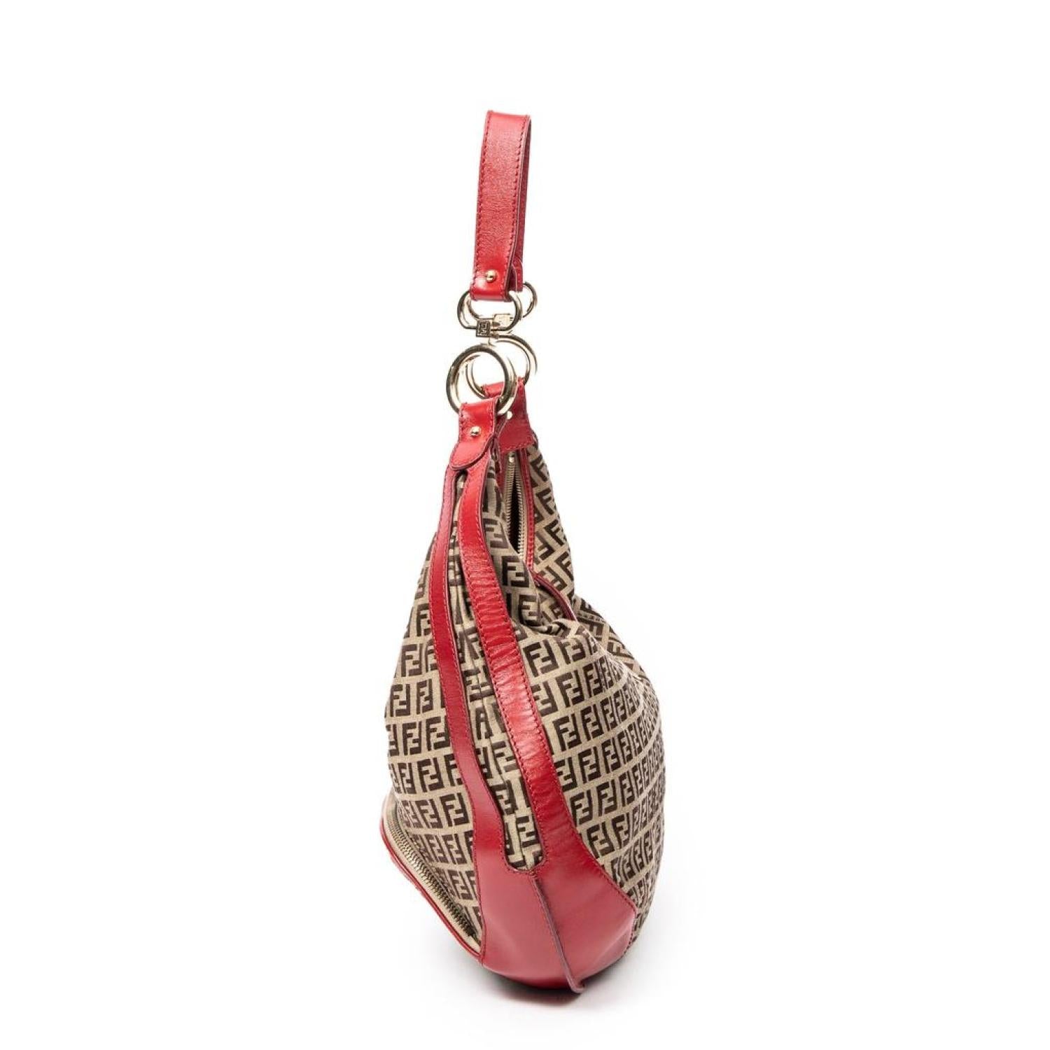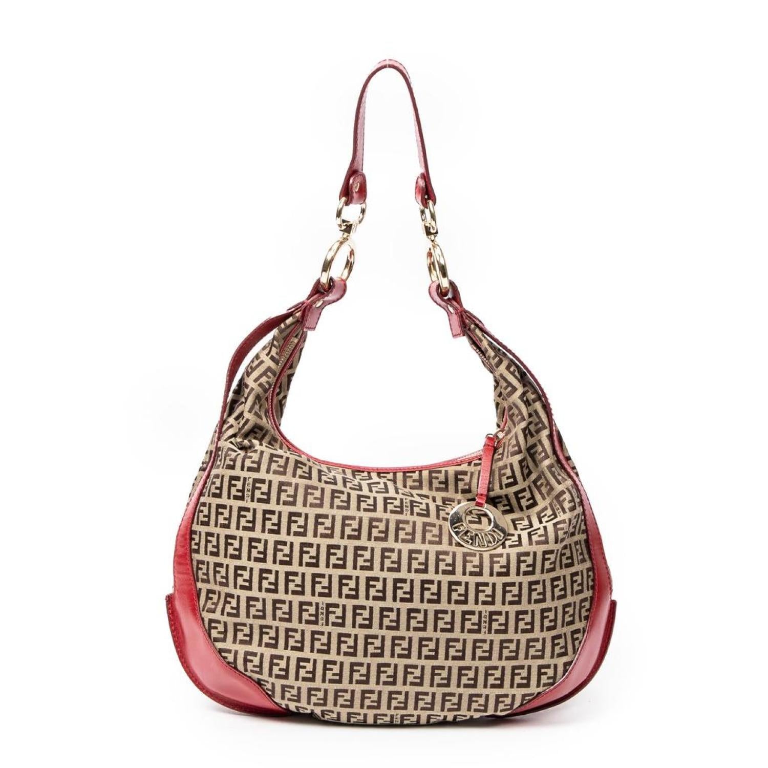 Fendi Shoulder Bag in Beige/Red Zucchino Canvas and Gold hardware. Dimensions - 39*26*2cm. Serial number - 2370-8BR465-LXT-049. Inclusions - charm.