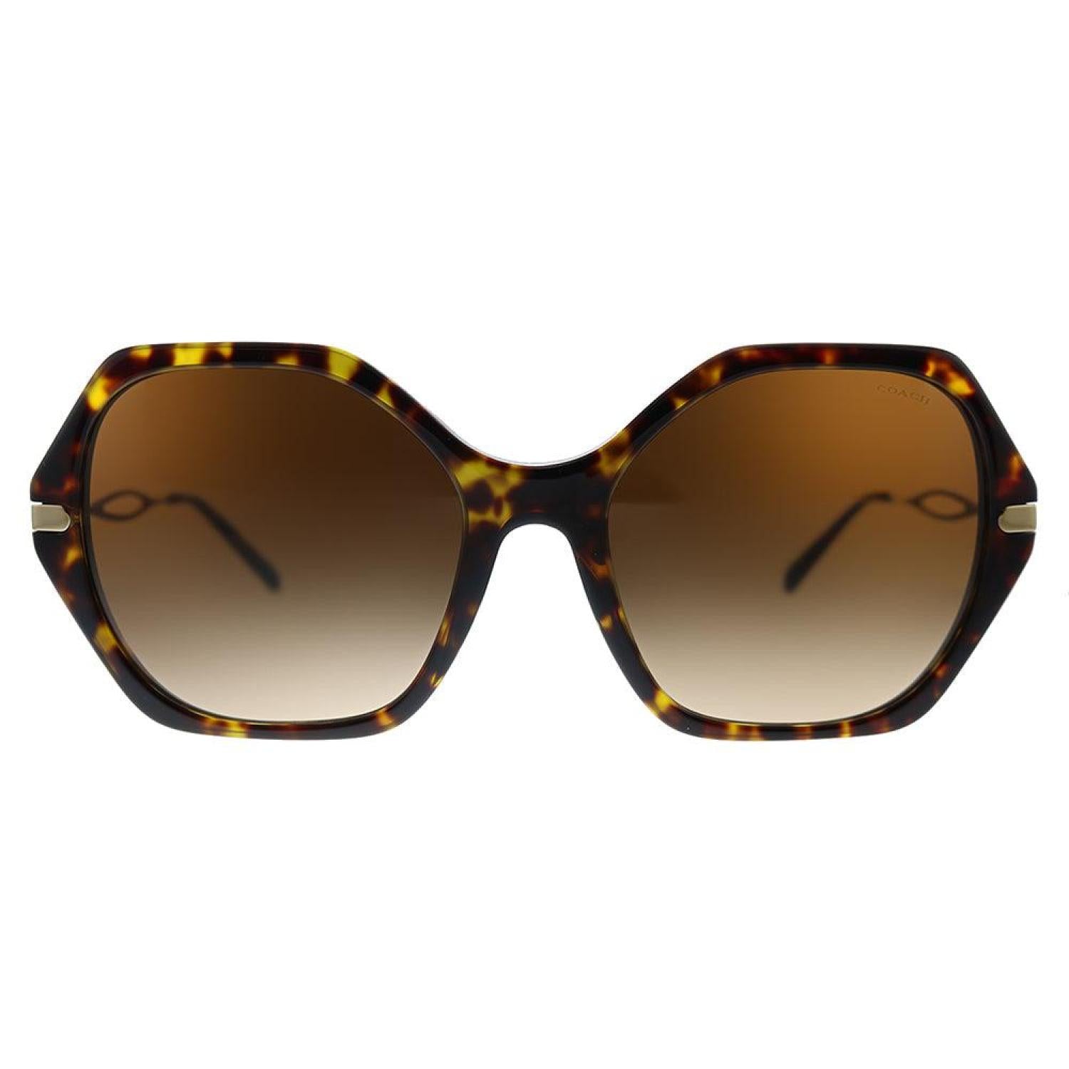 Coach C3345 HC 8315 512074 Womens Dark Tortoise Brown Gradient Lens SunglassesFrame Color - Dark TortoiseFrame Style - GeometricFrame Material - PlasticLens Color - Brown Gradient LensProtection - UV ProtectedIncludes - Coach case, cloth and paperwork *may vary from pictureSize - Lens 57 mm x bridge 19 mm x arms 140 mm All measurements may vary
