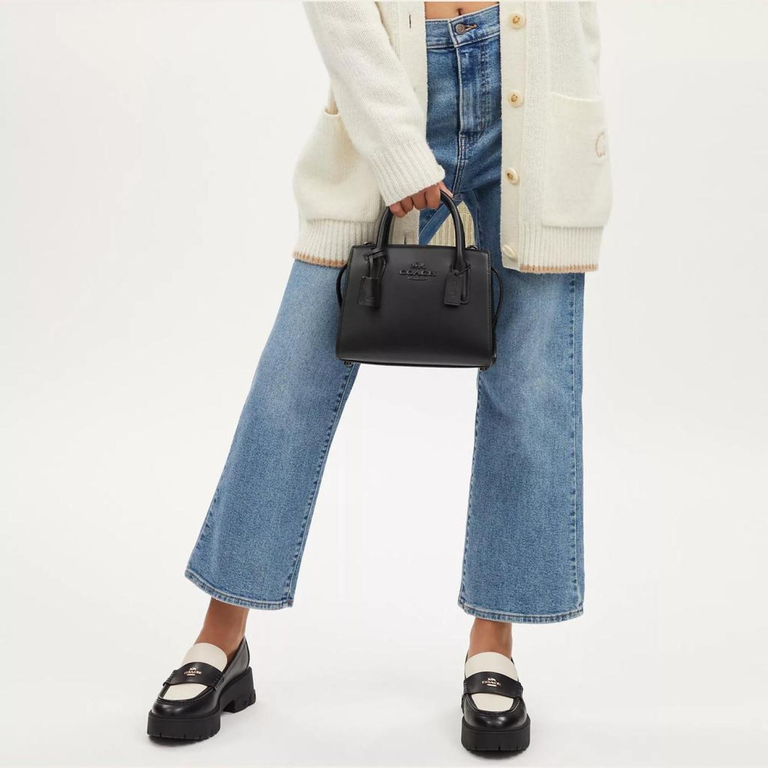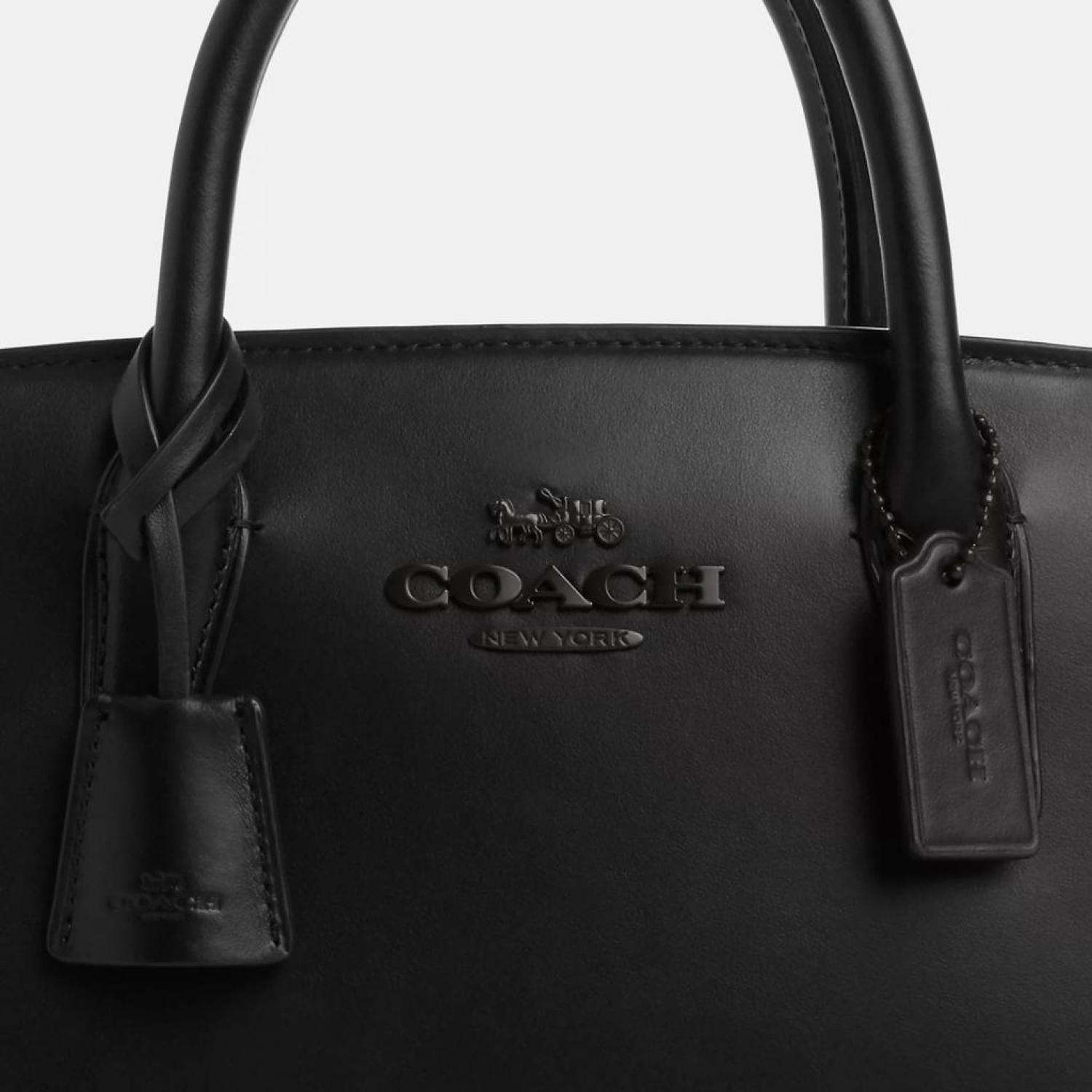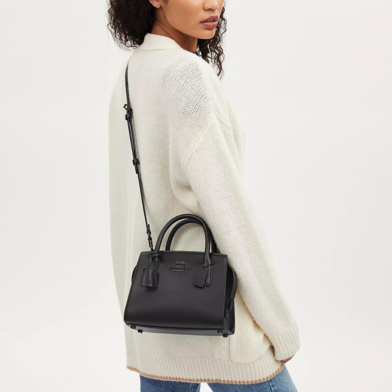 Refined calf leather Inside multifunction pocket Zip closure fabric lining Handles with 3 1/4 drop Detachable strap with 21 3/4 drop for shoulder or crossbody wear Four protective feet at base 8 3/4 (L) x 6 1/2 (H) x 4 1/2 (W) Style No. CP081 | Coach Outlet Andrea Carryall - Black