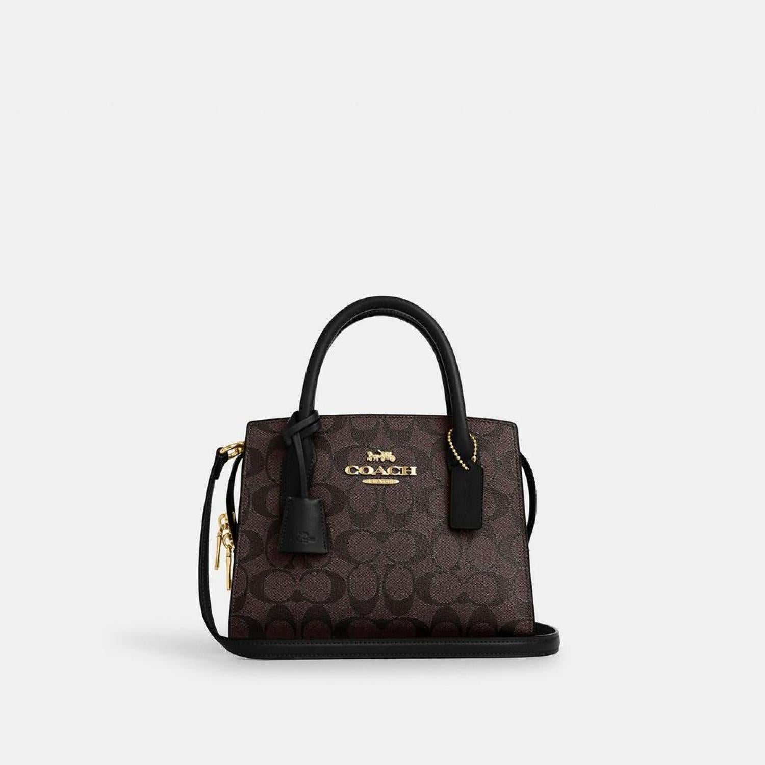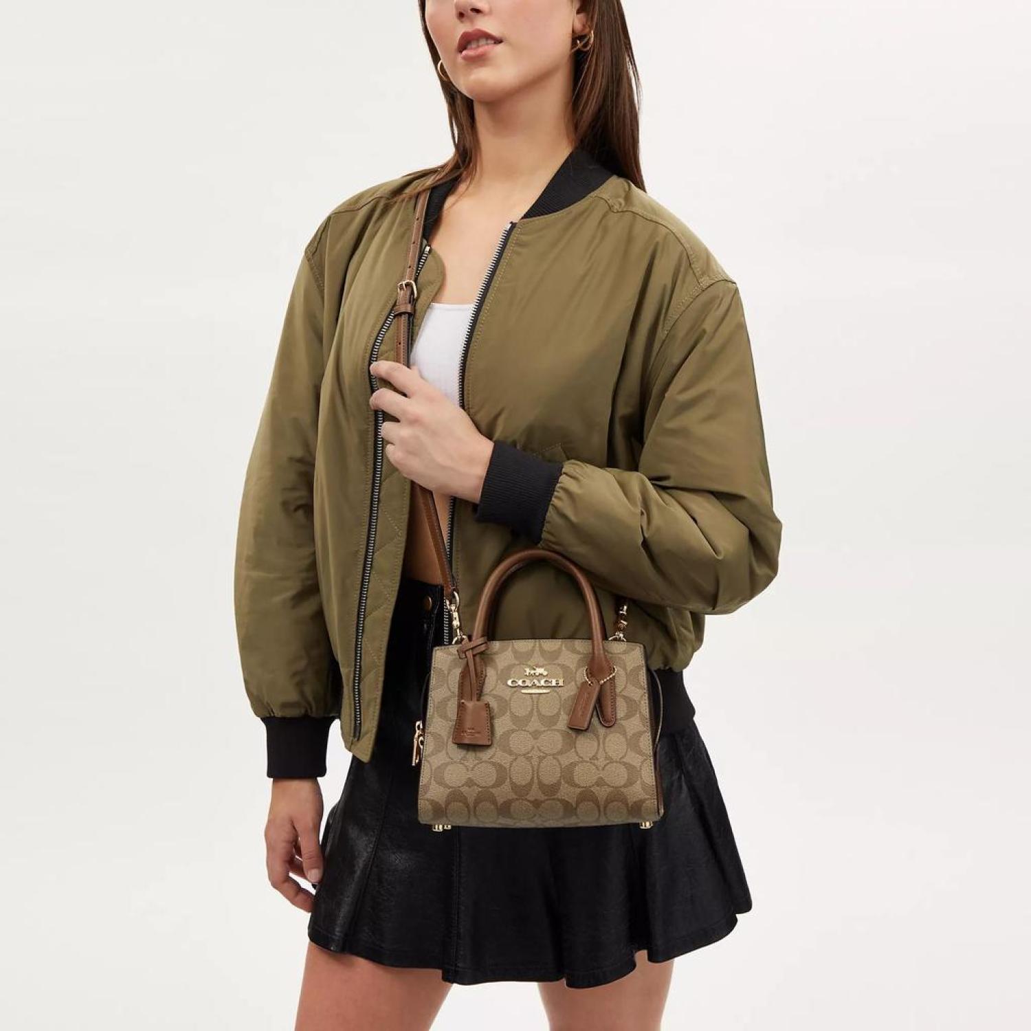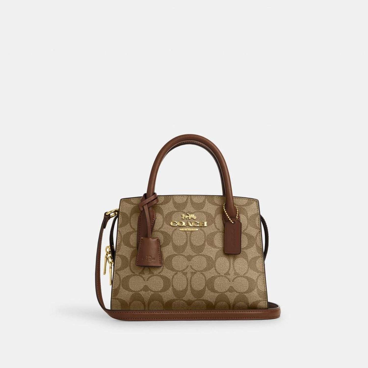 • Signature coated canvas and smooth leather Inside multifunction pocket Zip closure fabric lining Handles with 3 1/4 drop Detachable strap with 21 3/4 drop for shoulder or crossbody wear Four protective feet at base 8 3/4 (L) x 6 1/2 (H) x 4 1/2 (W) Style No. CP083 | Coach Outlet Andrea Carryall In Signature Canvas - Beige