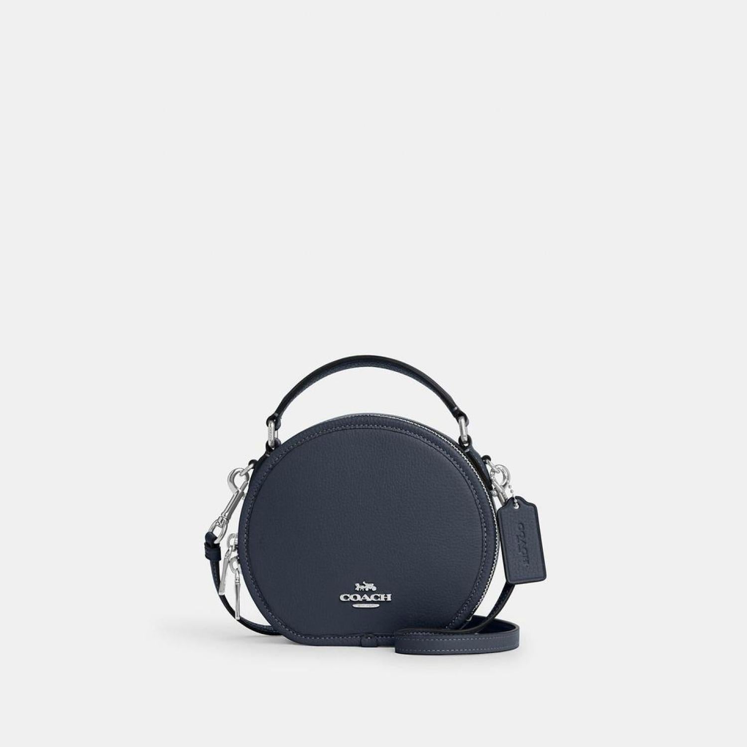 Refined pebble leather Two credit card slots Double zip closure fabric lining Top handle with 1 1/4 drop Detachable strap with 23 1/4 drop for shoulder or crossbody wear 6 3/4 (L) x 6 (H) x 2 1/2 (W) Style No. CO987 | Coach Outlet Canteen Crossbody - Blue