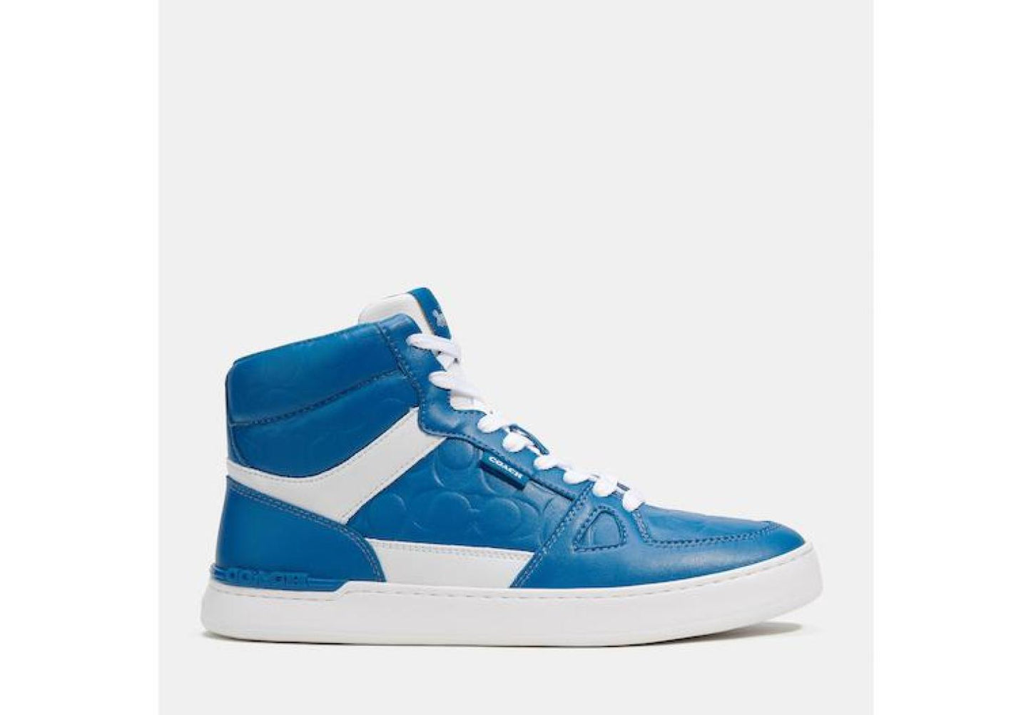 • Signature leather leather and suede upper Fabric lining and footbed Rubber outsole Lace-up closure Style No. CI081 | Coach Outlet Clip Court High Top Sneaker In Signature - Blue, Size - 7.5