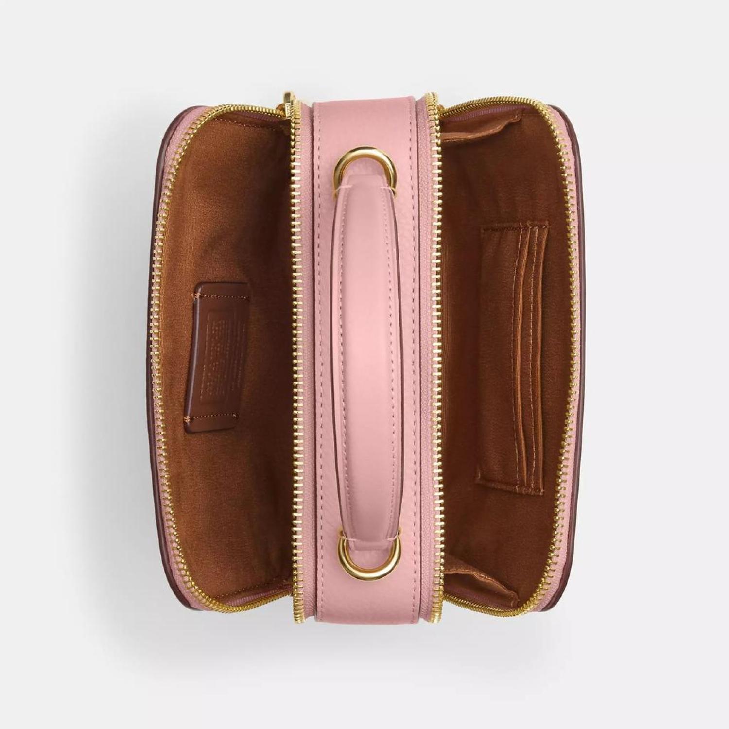 • Refined pebble leather and smooth leather Double zip closure fabric lining Top handle with 1/2 drop Detachable strap with 22 1/2 drop for shoulder or crossbody wear 7 (L) x 5 1/2 (H) x 2 1/2 (W) Coach x Tom Wesselmann © Estate of Tom Wesselmann. Licensed by Artestar New York. Style No. CQ044 | Coach Outlet Coach X Tom Wesselmann Box Crossbody - Pink