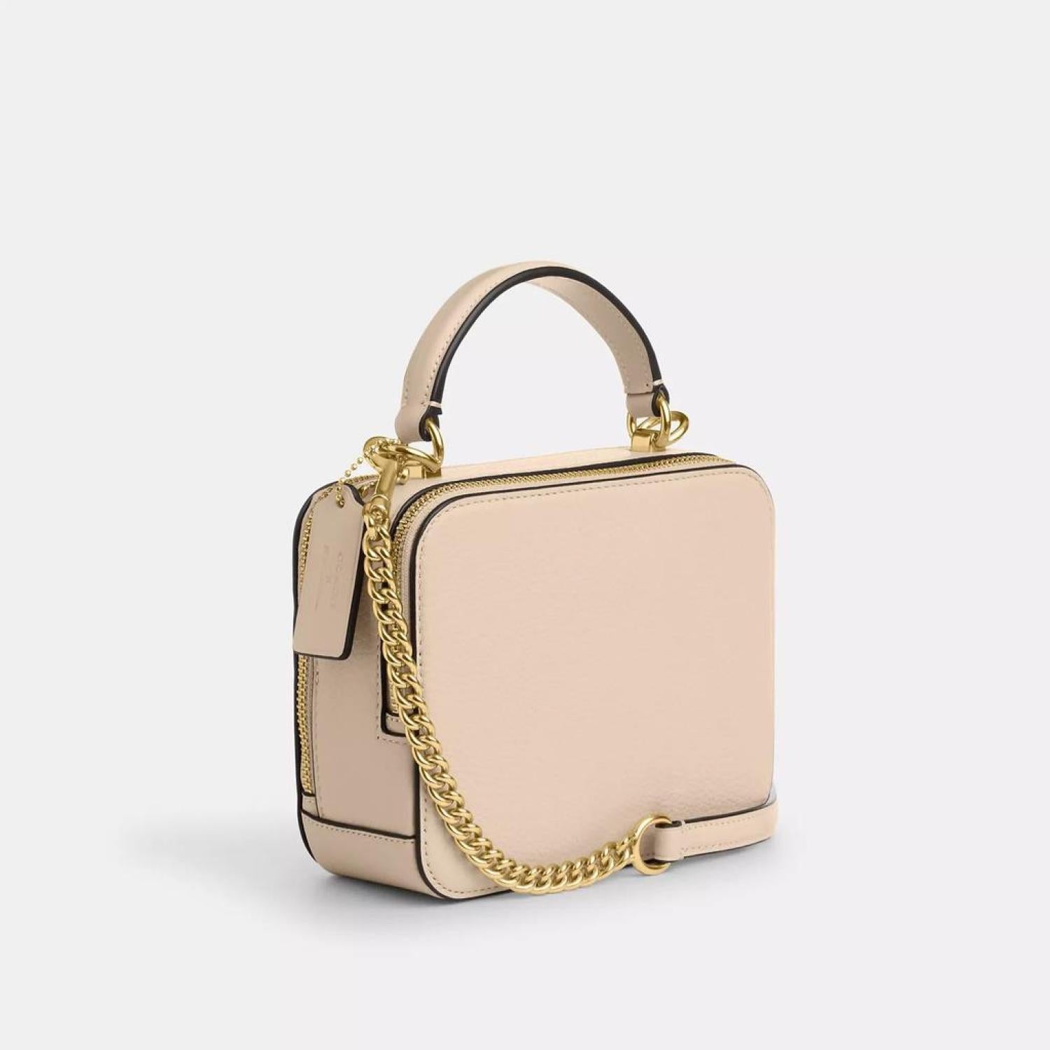 • Refined pebble leather and smooth leather Double zip closure fabric lining Top handle with 1/2 drop Detachable strap with 22 1/2 drop for shoulder or crossbody wear 7 (L) x 5 1/2 (H) x 2 1/2 (W) Coach x Tom Wesselmann © Estate of Tom Wesselmann. Licensed by Artestar New York. Style No. CQ045 | Coach Outlet Coach X Tom Wesselmann Box Crossbody - White