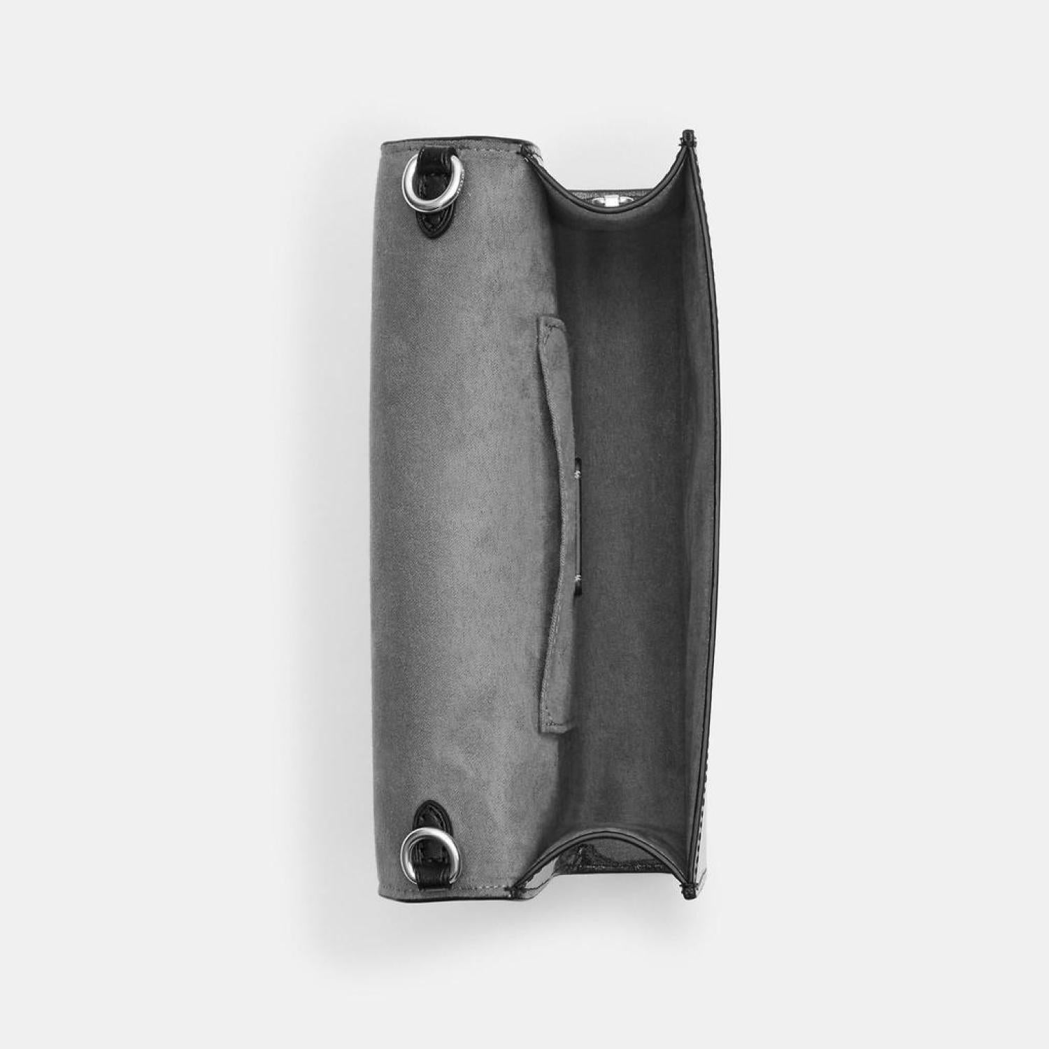 Glitter patent leather and smooth leather Inside multifunction pocket Snap closure fabric lining Outside open pocket Detachable strap with 21 3/4 drop for shoulder or crossbody wear 8 1/2 (L) x 5 1/4 (H) x 2 (W) Style No. CP032 | Coach Outlet Flap Crossbody - Grey